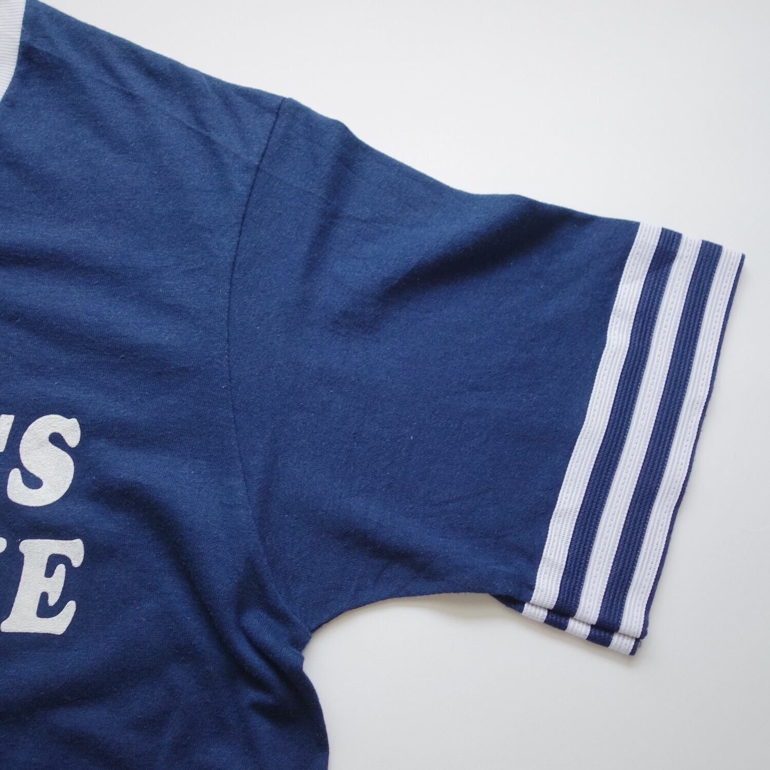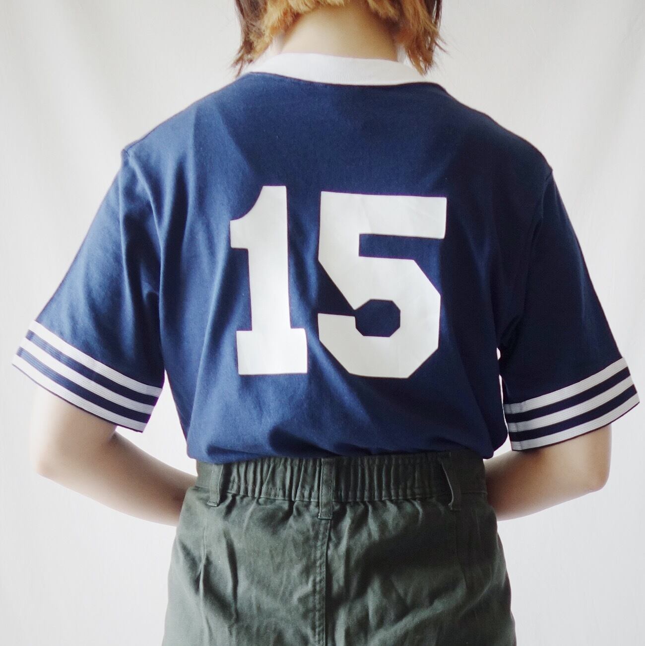 袖にラインテープがオンされたスポーティなTシャツ。バックスタイルのナンバリングもインパクト大。