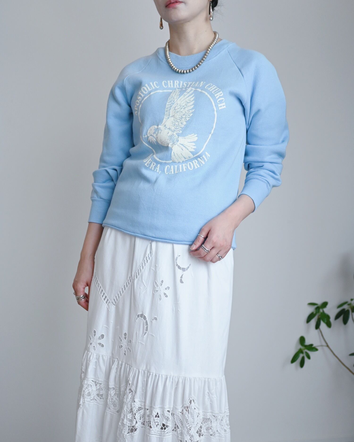 鳥のプリントが可愛いスウェット。ジャストサイズなので、ワイドパンツやボリュームスカートなどとの相性が良いです。