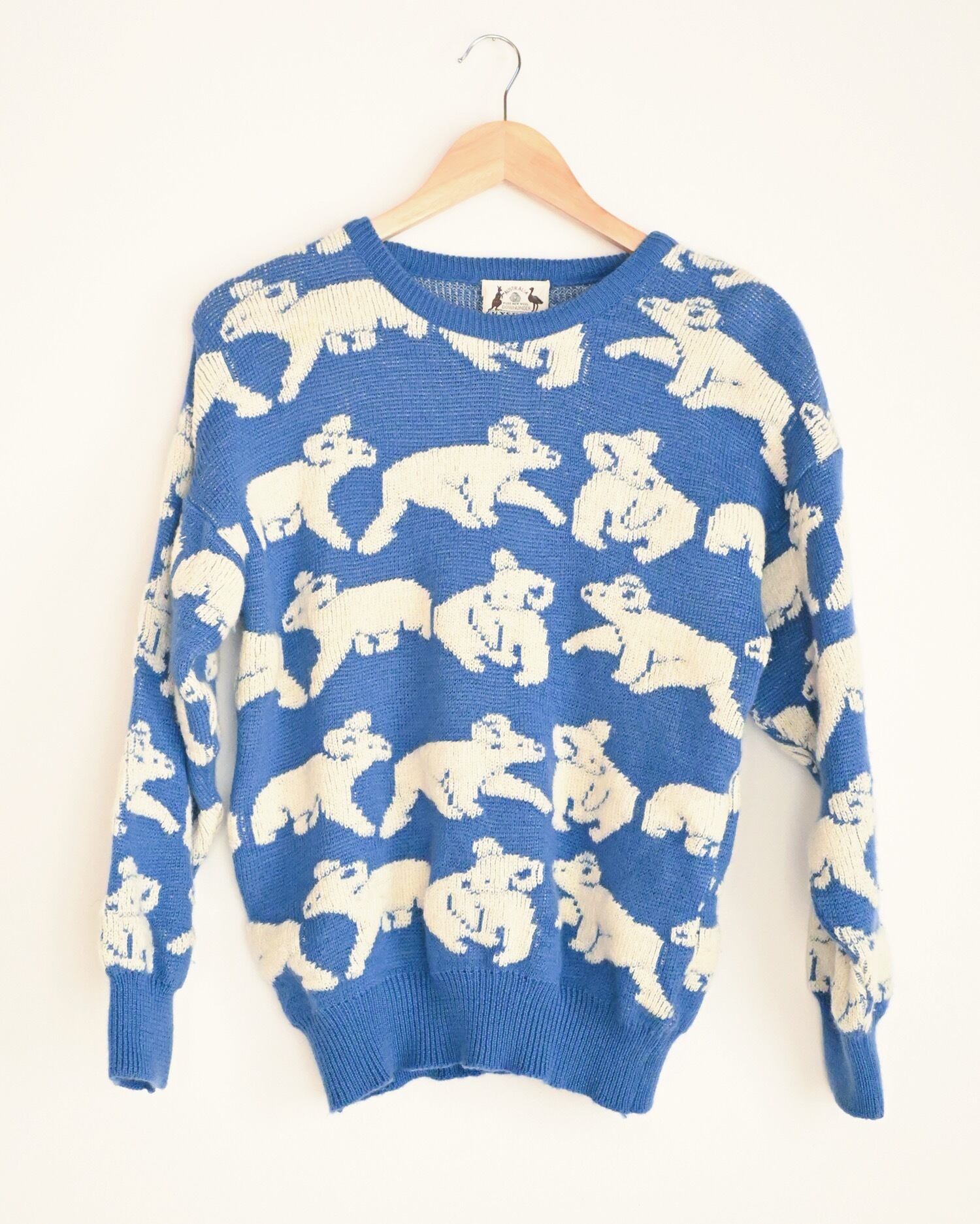 インパクトがある、コアラの総柄ニットです。古着ならではなデザインが魅力です。