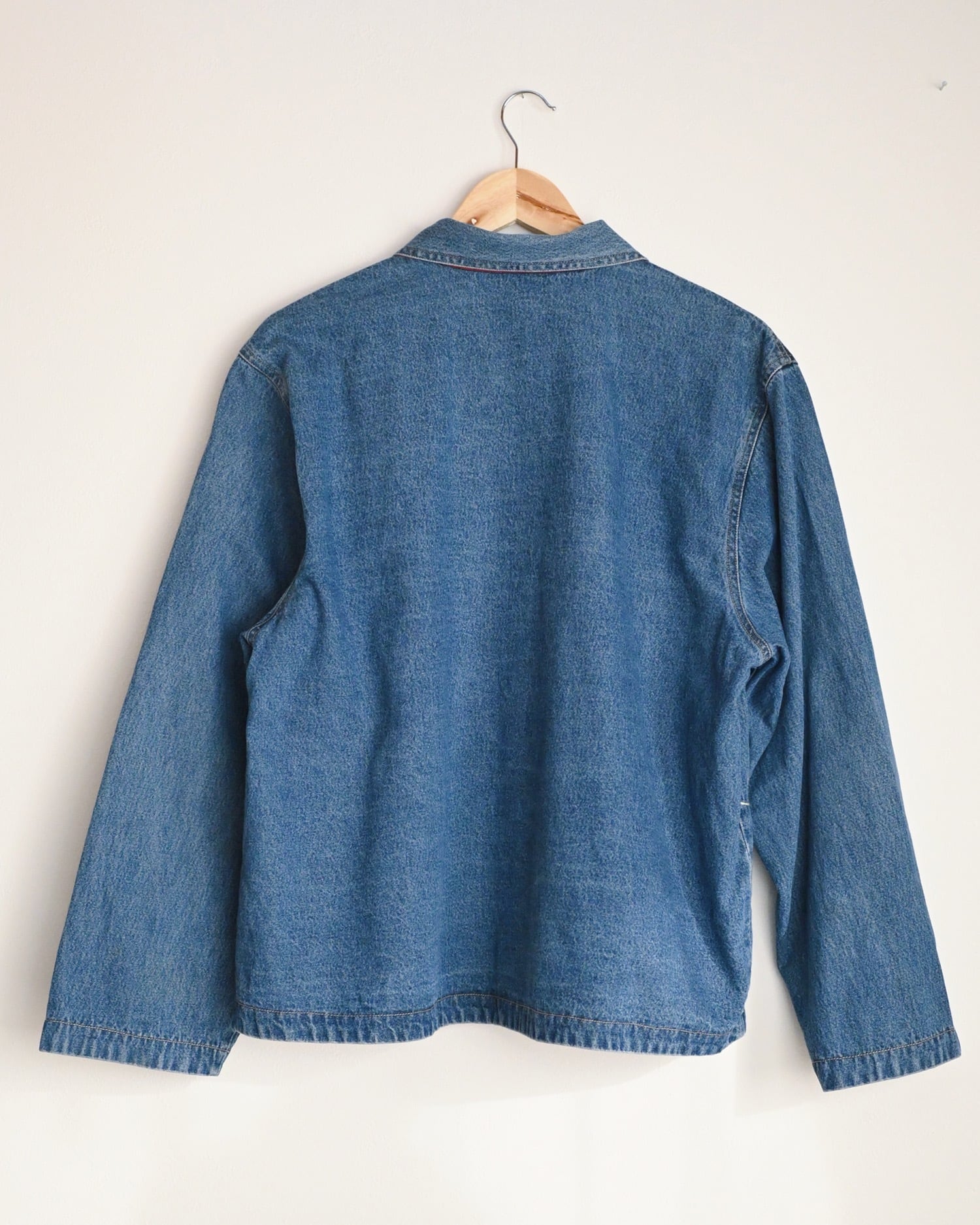 リーフモチーフの刺繍デニムジャケット。