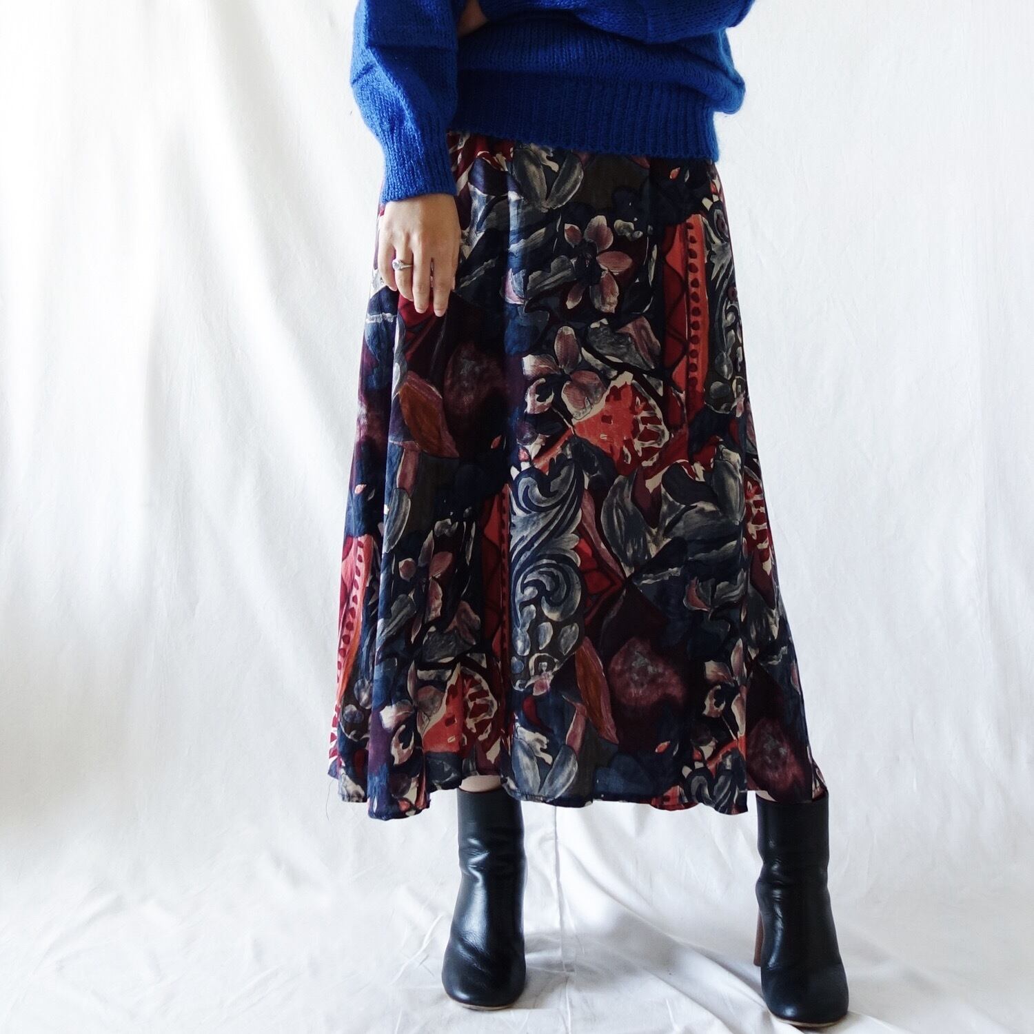 1枚でインパクトがあるので、シンプルなトップスに合わせると◎