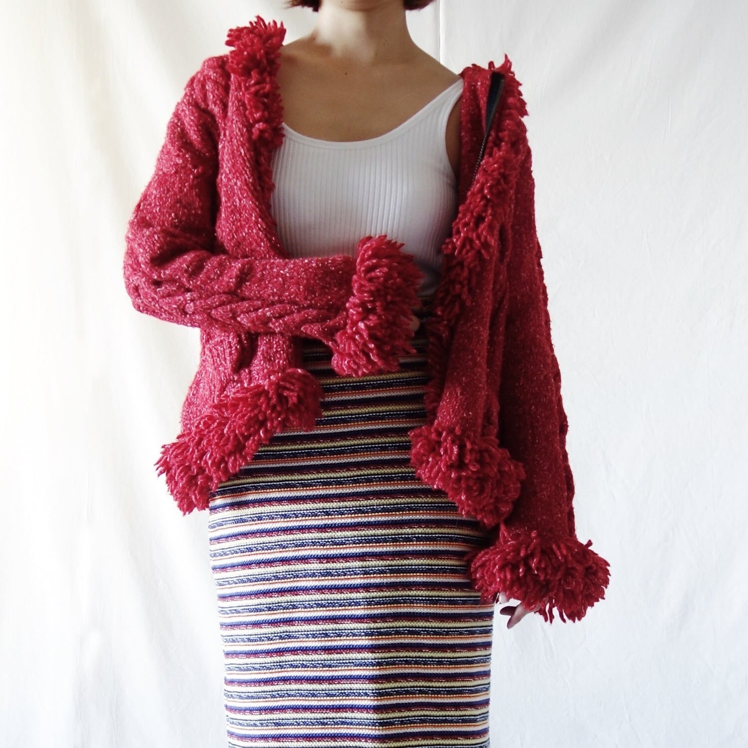 fringe knit parka