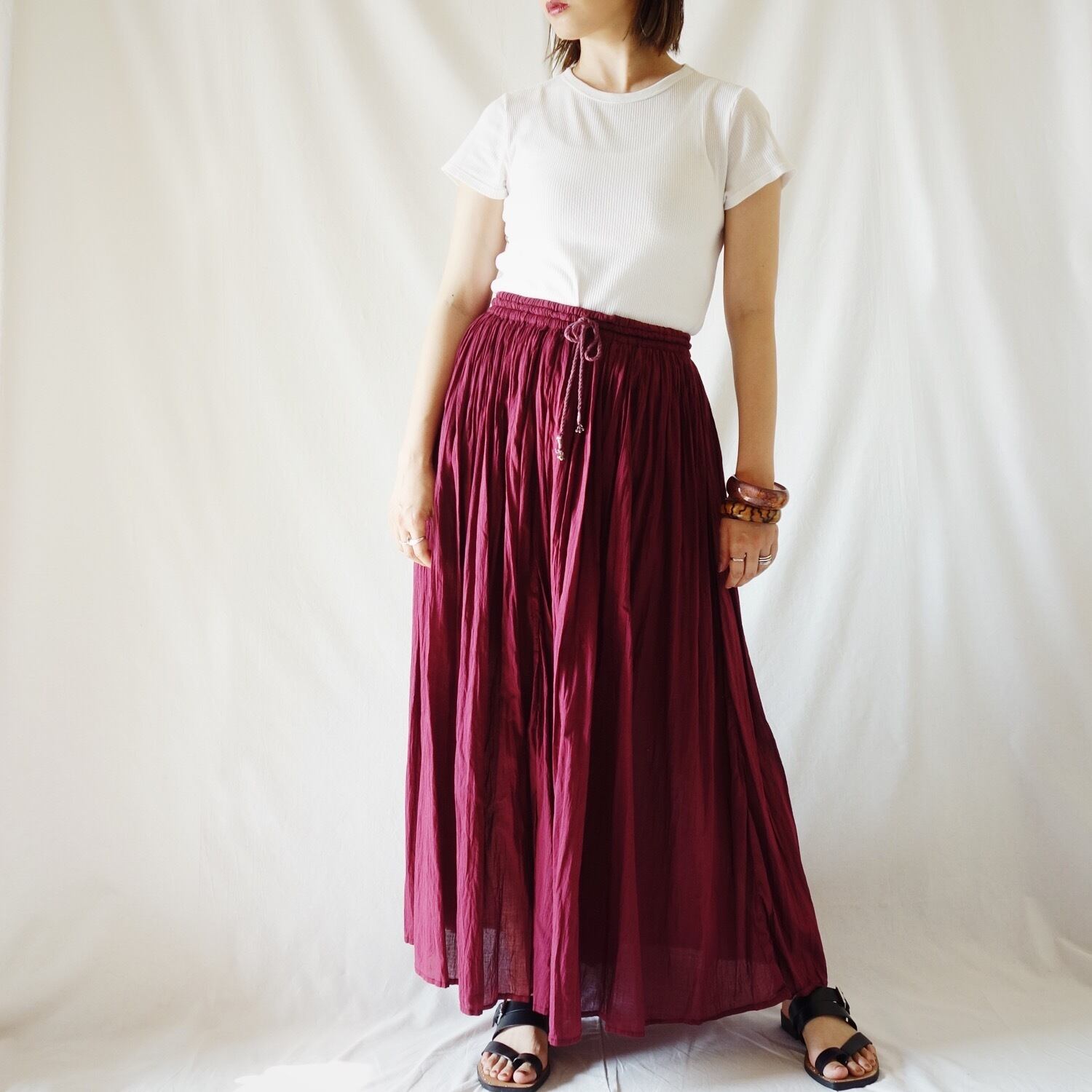 ダークレッドの色が大人っぽく着ていただけます。涼しいので、暑い夏にぴったりです。