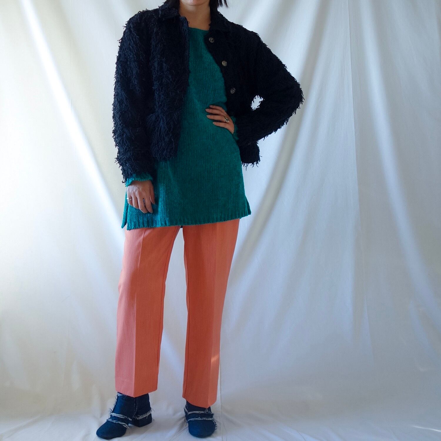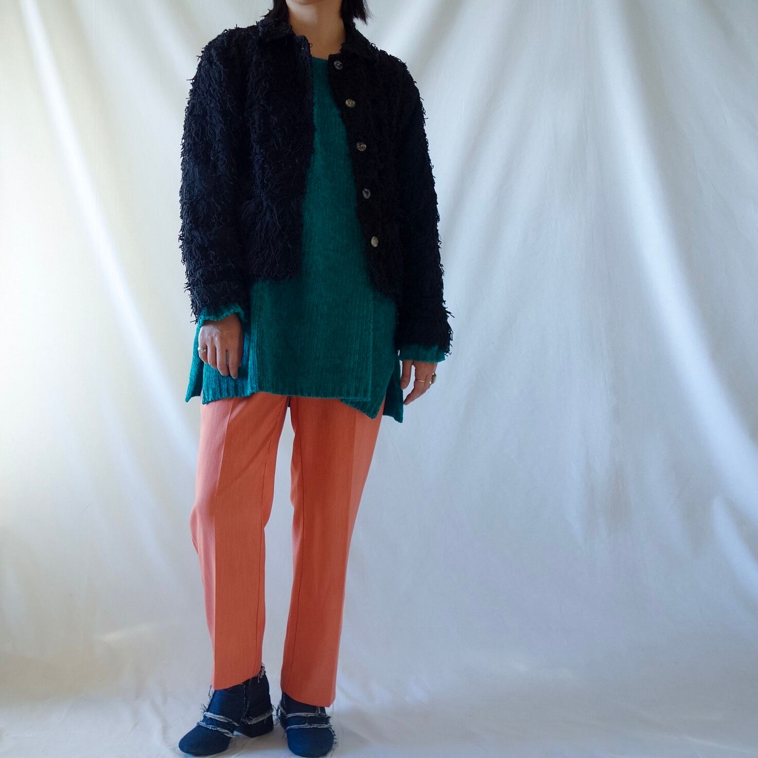 もじゃもじゃのテキスタイルが可愛いジャケット。