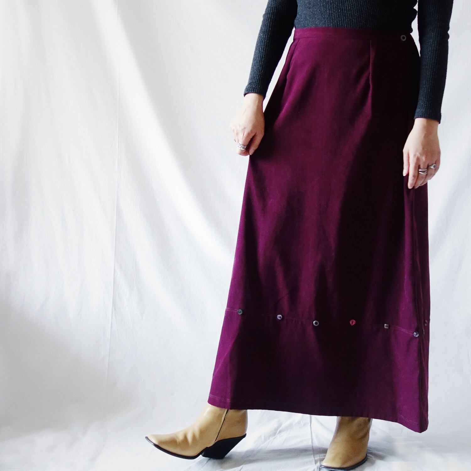 裾には、様々な形のシェルボタンが縫い付けられアクセントになっています。
