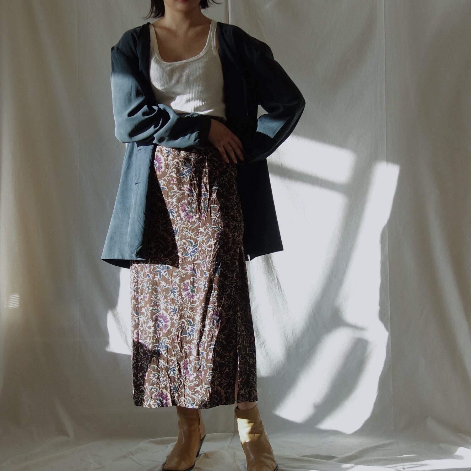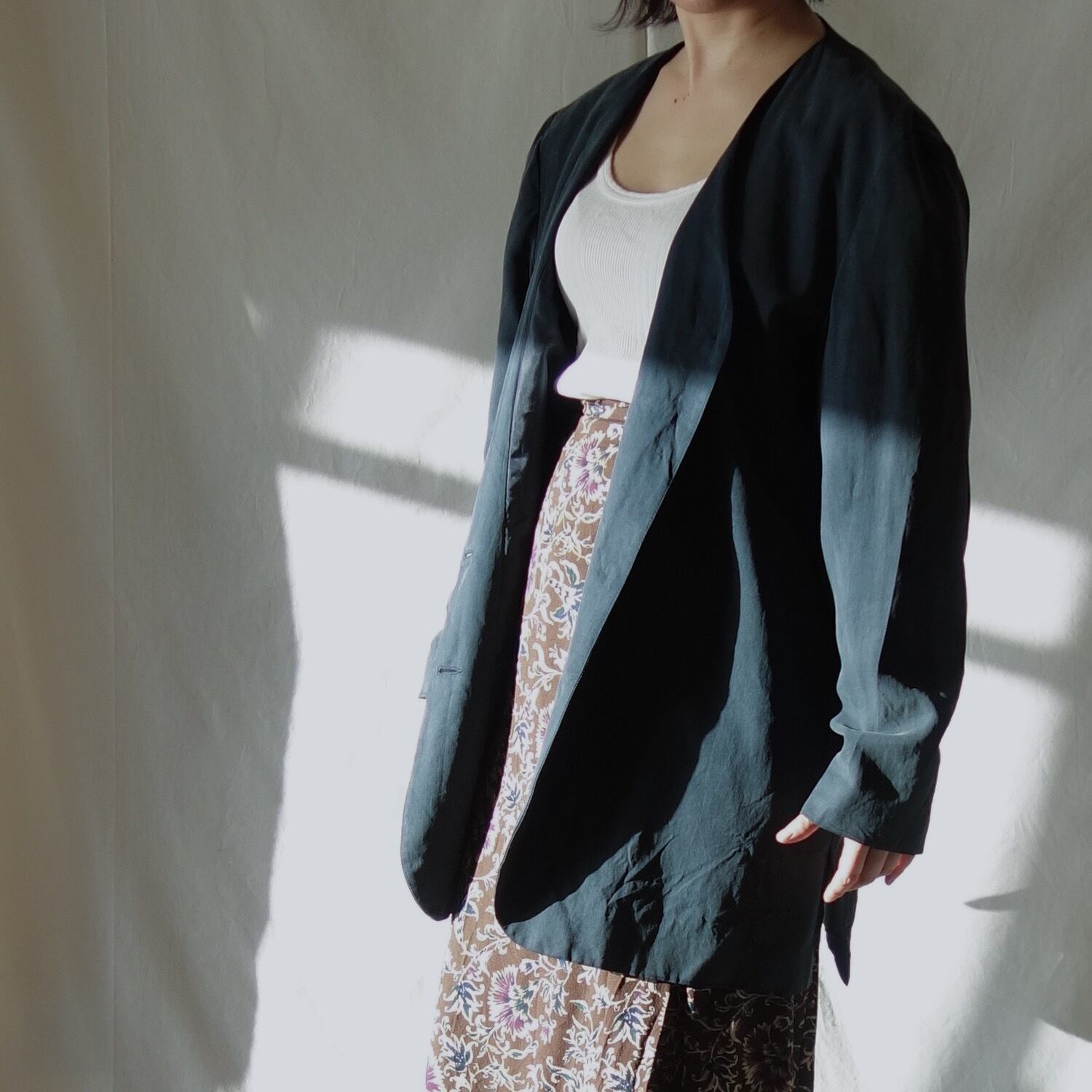 ビッグサイズのノーカラーシルクジャケット。