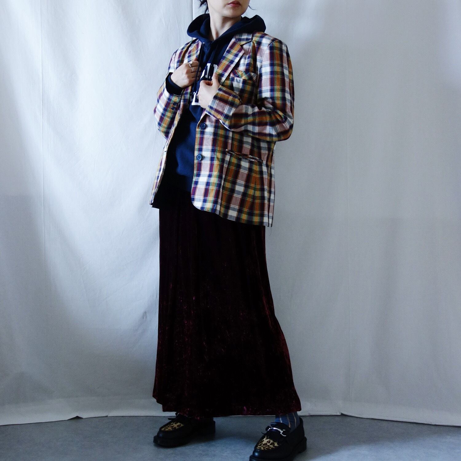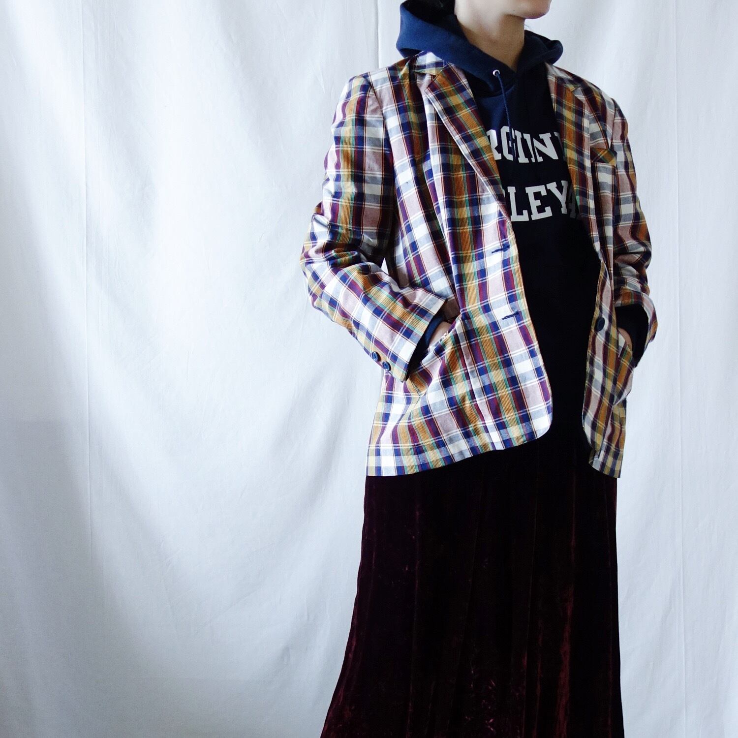 チェック柄テーラージャケット。