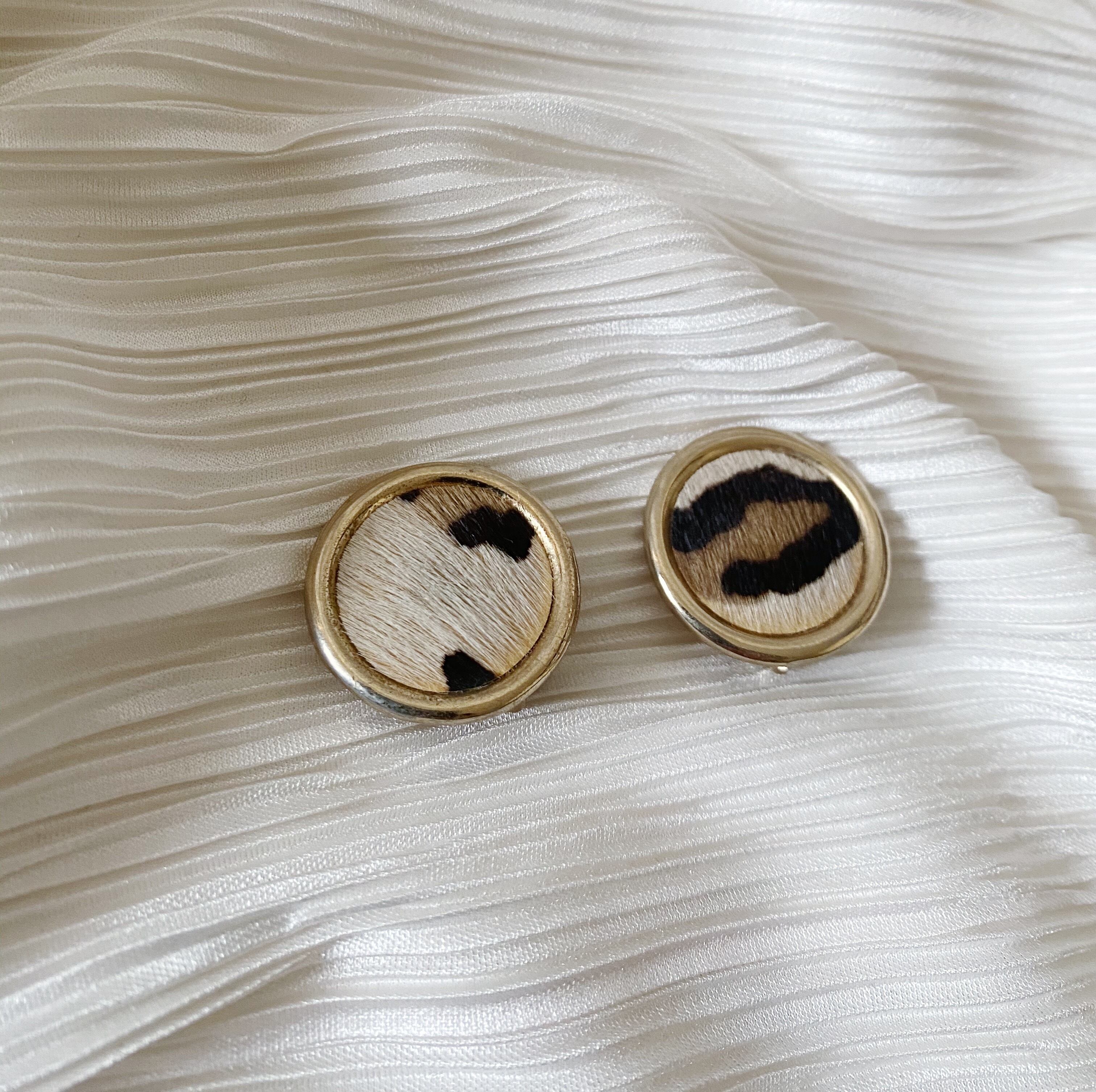 ハラコ素材のレオパード柄が可愛いイヤリング。