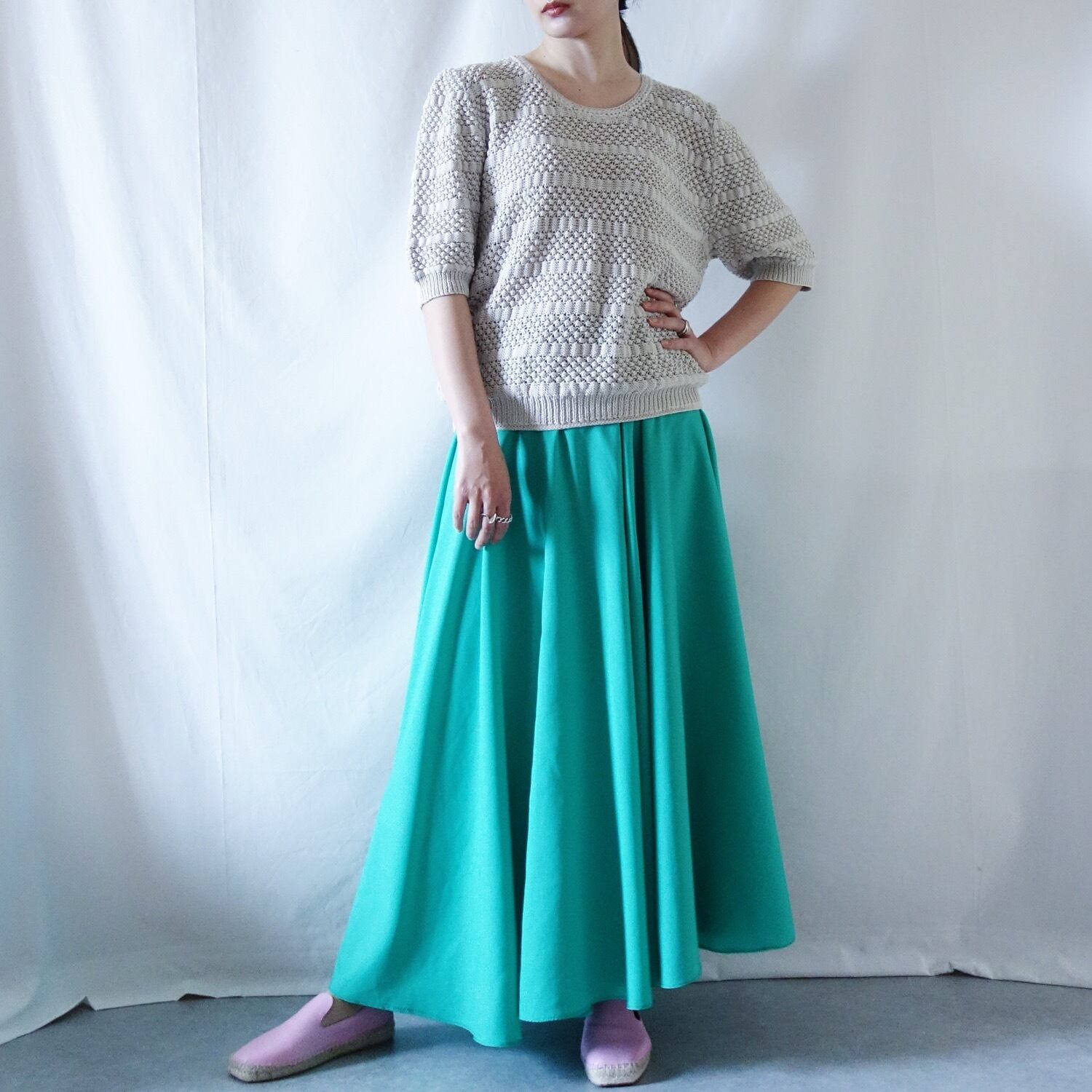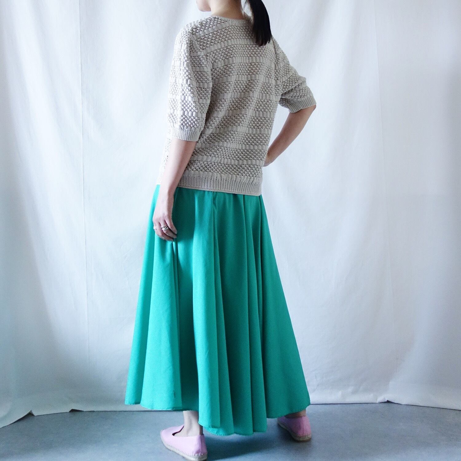 ポコポコした編み地が可愛い、ベージュのサマーニット。透け感があり春や秋にオススメなアイテムです。