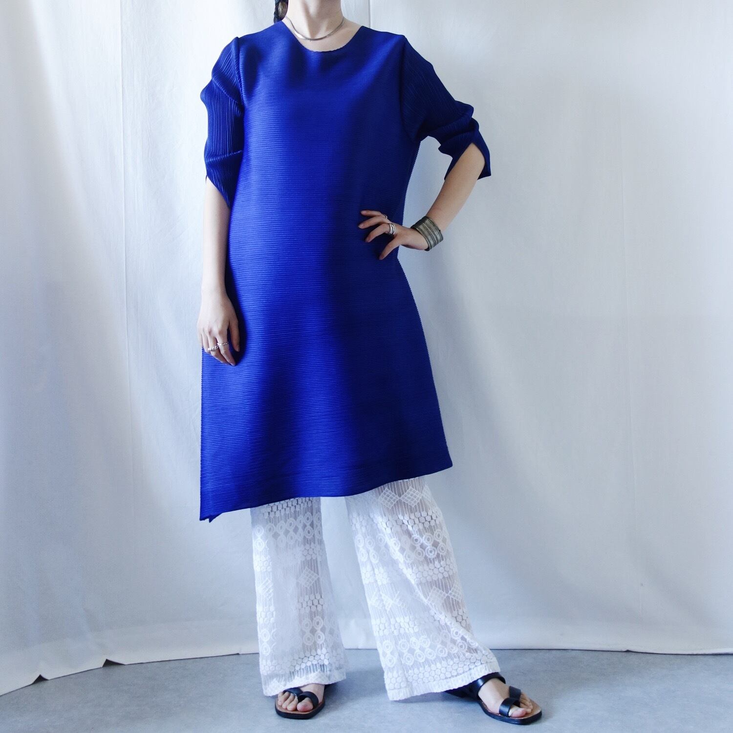 pleats blue dress