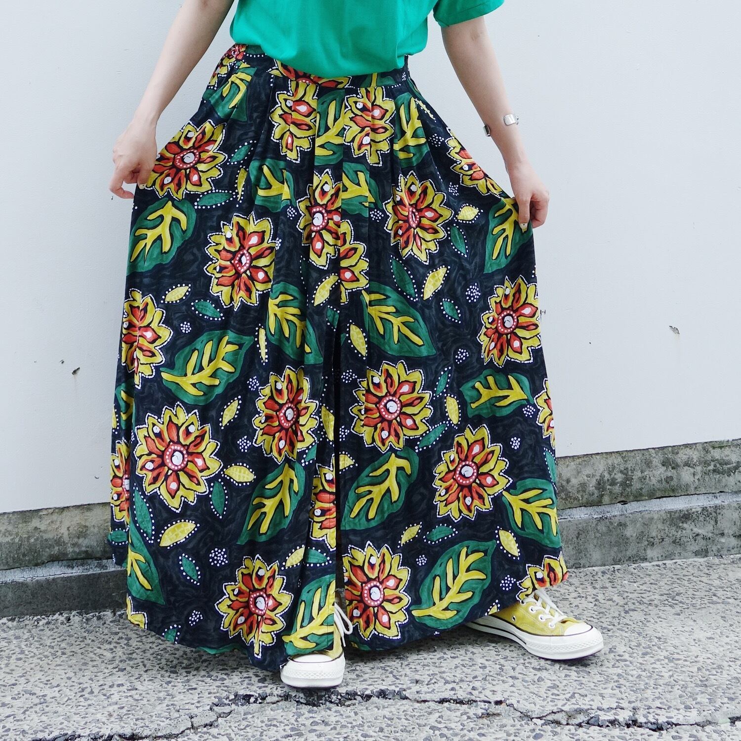 アフリカンな柄が可愛いフレアスカート。