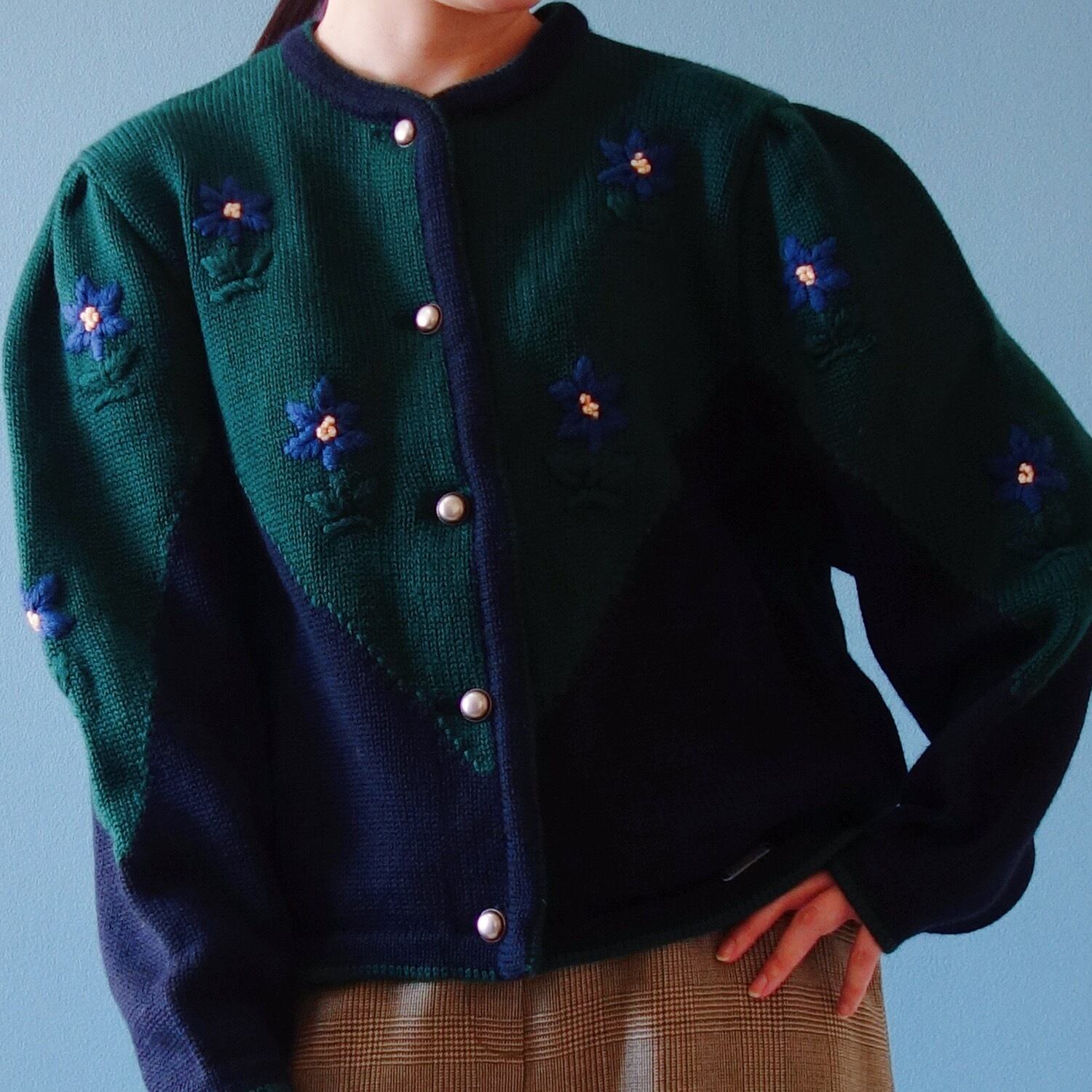 パフスリーブで少し甘さがあるぽってりとした袖が可愛い。ピュアウールで編まれており、とてもあたたかです。