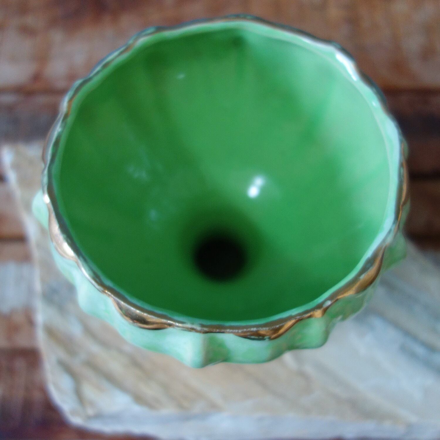 グリーンとゴールドのコントラストが美しいフラワーベース。多肉などのプランターとしても◎