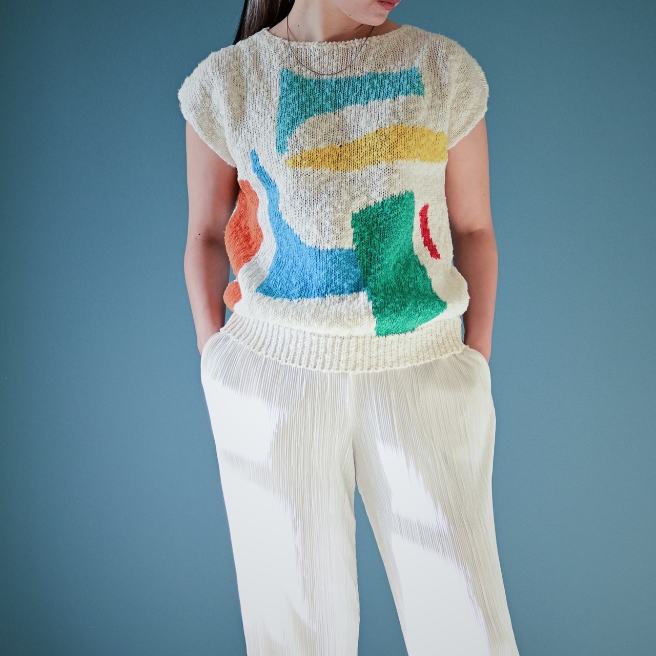 ぽこぽこしたマテリアルが可愛らしい、スラブヤーンで編まれたサマーニット。