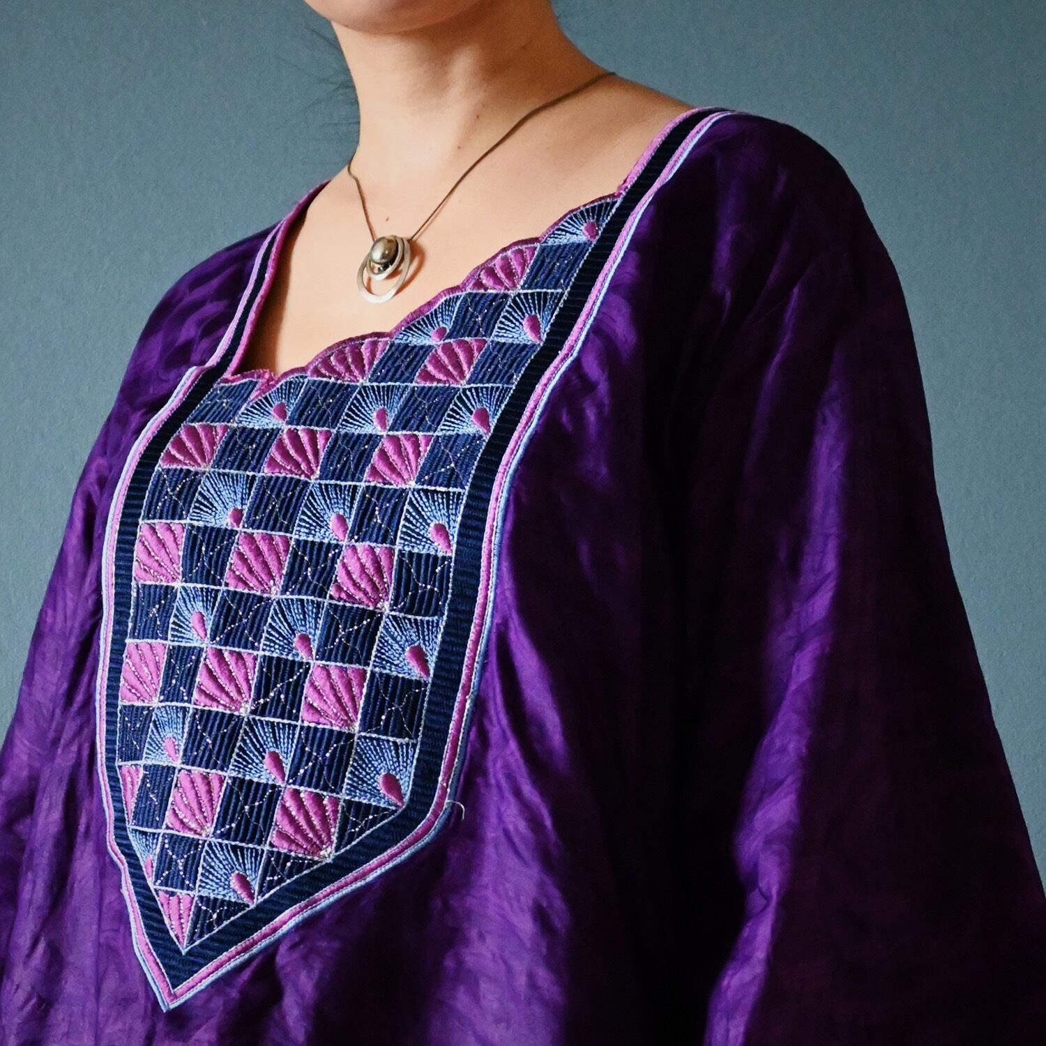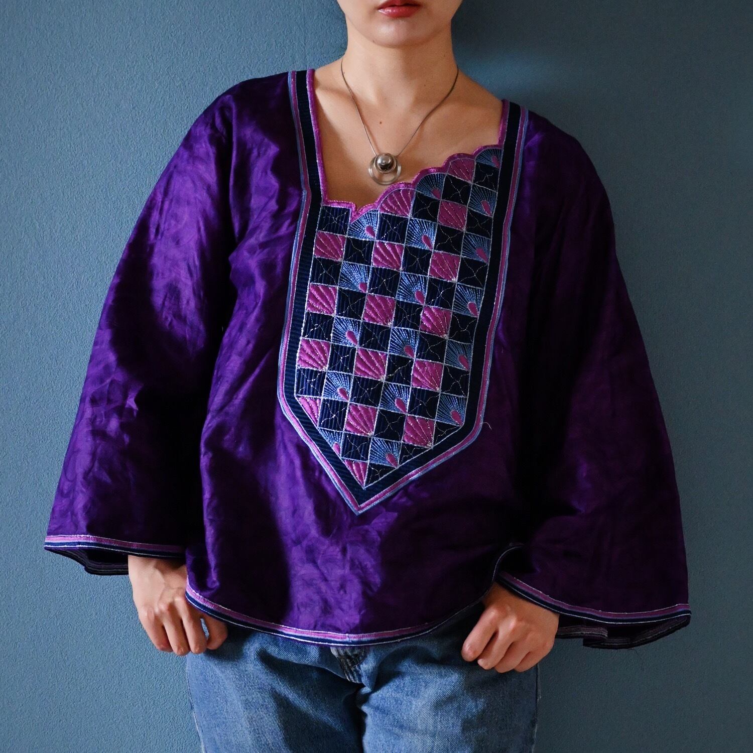 深いパープル生地にもジャガード模様が入っておりとても凝った一枚です。