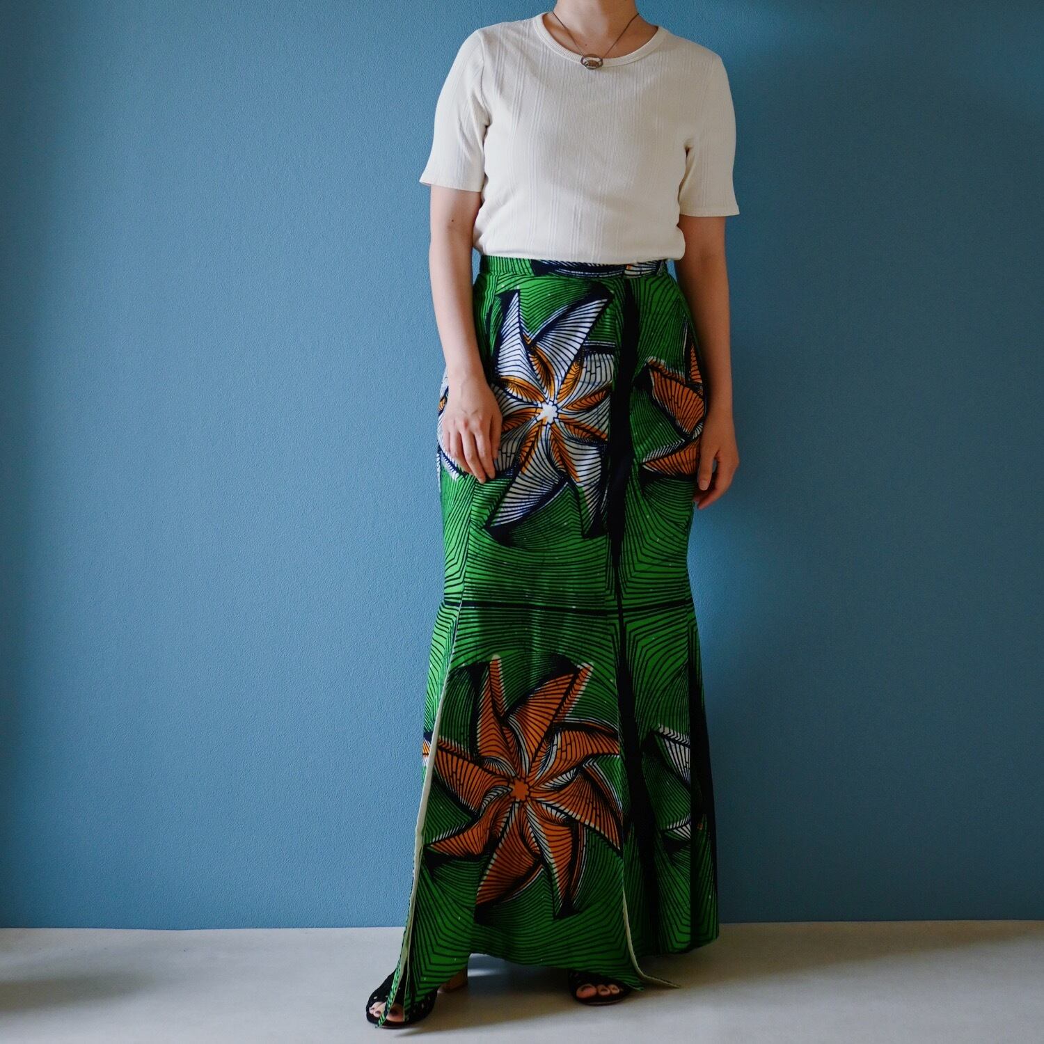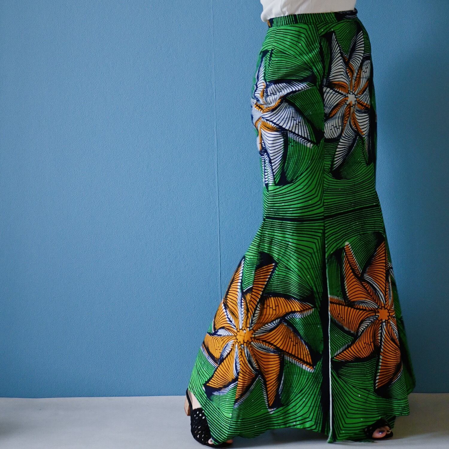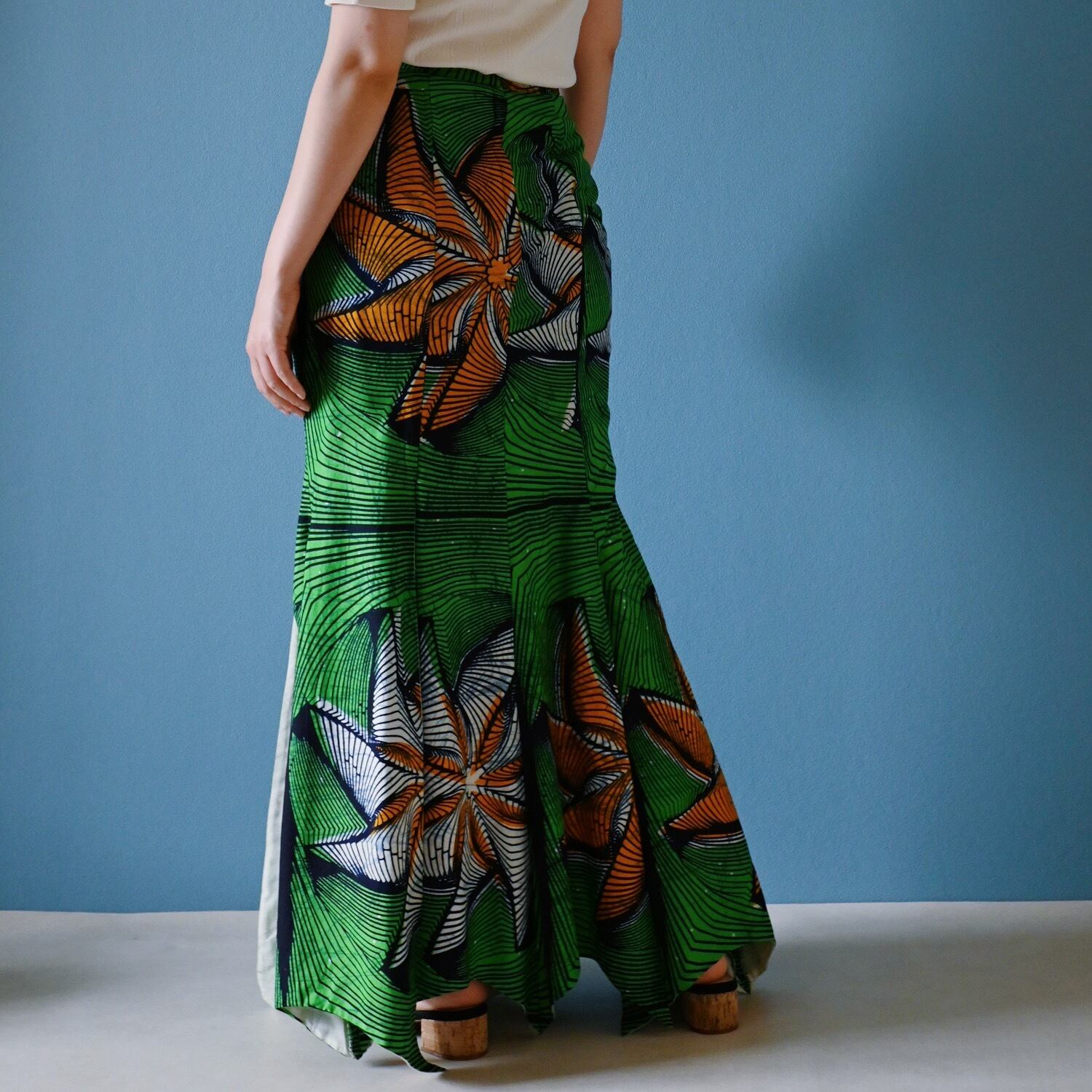 鮮やかなグリーンが目を引くバティックマーメイドスカート。
