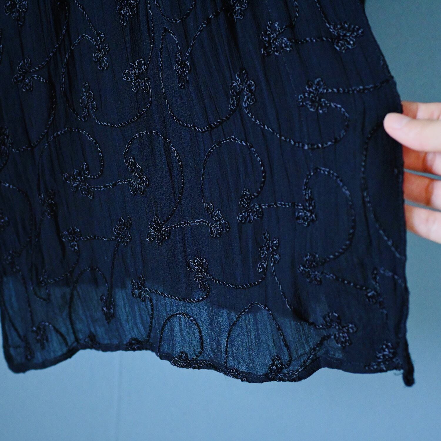 生地全体に刺繍がデザインされた美しいシアーシャツ。