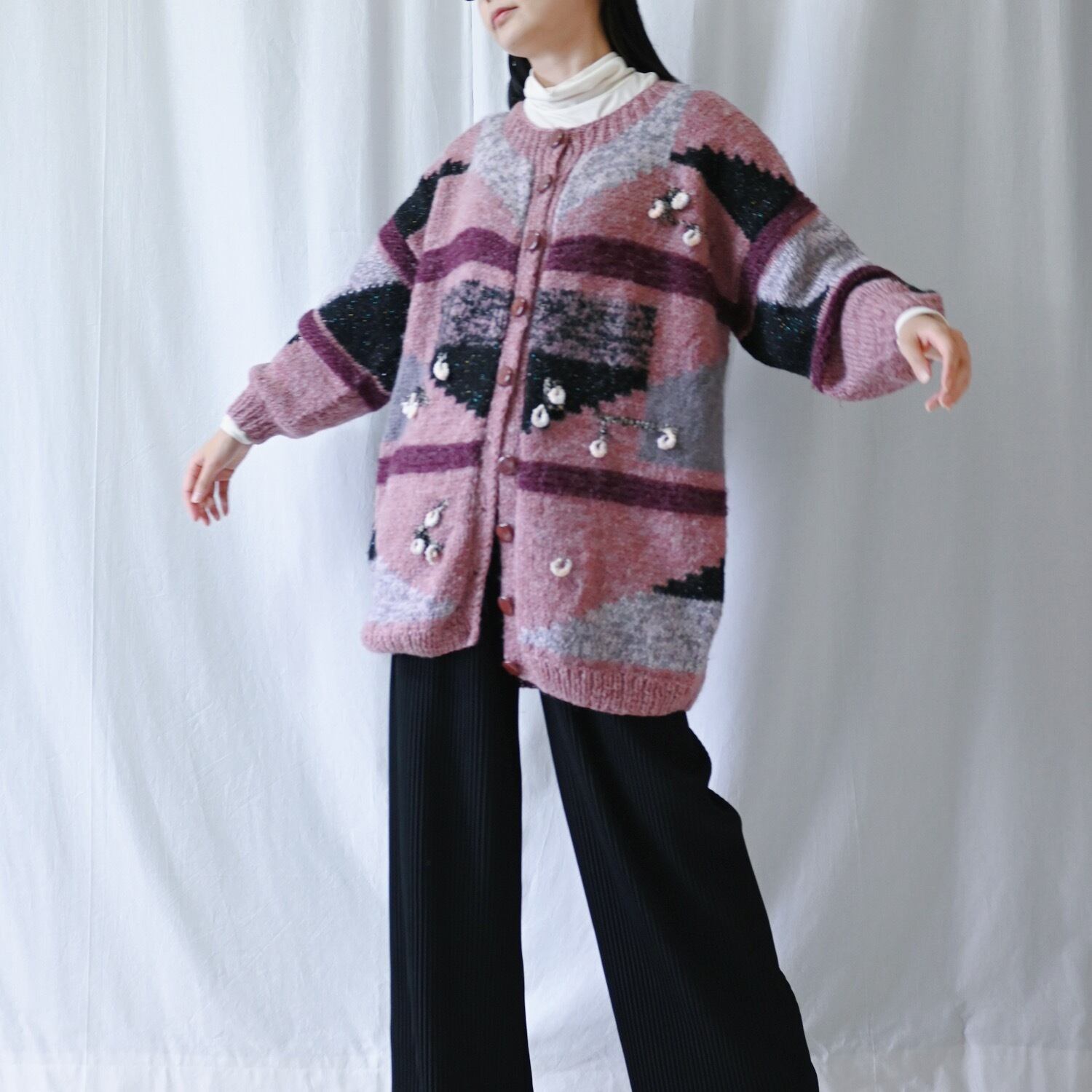 くすみピンクが可愛いBIGカーディガン。
