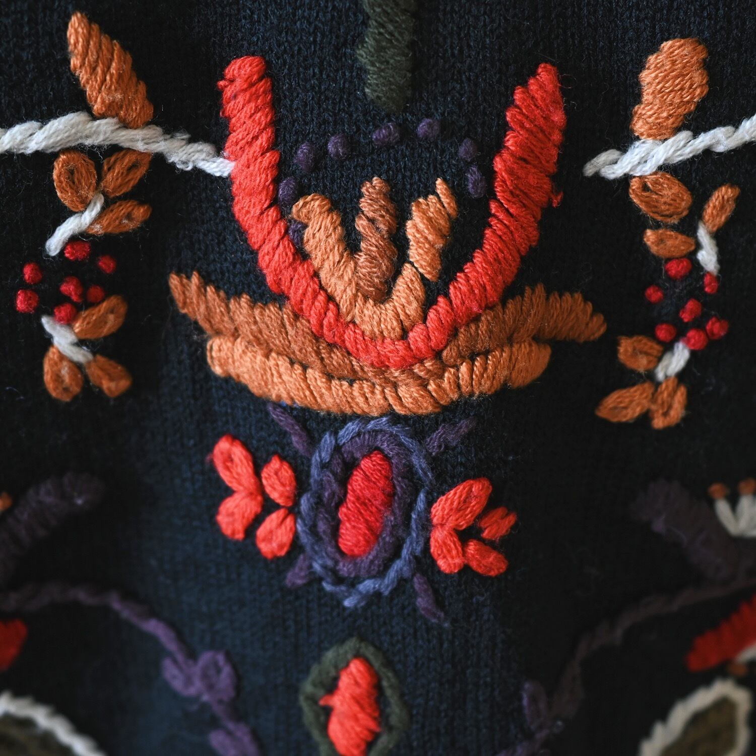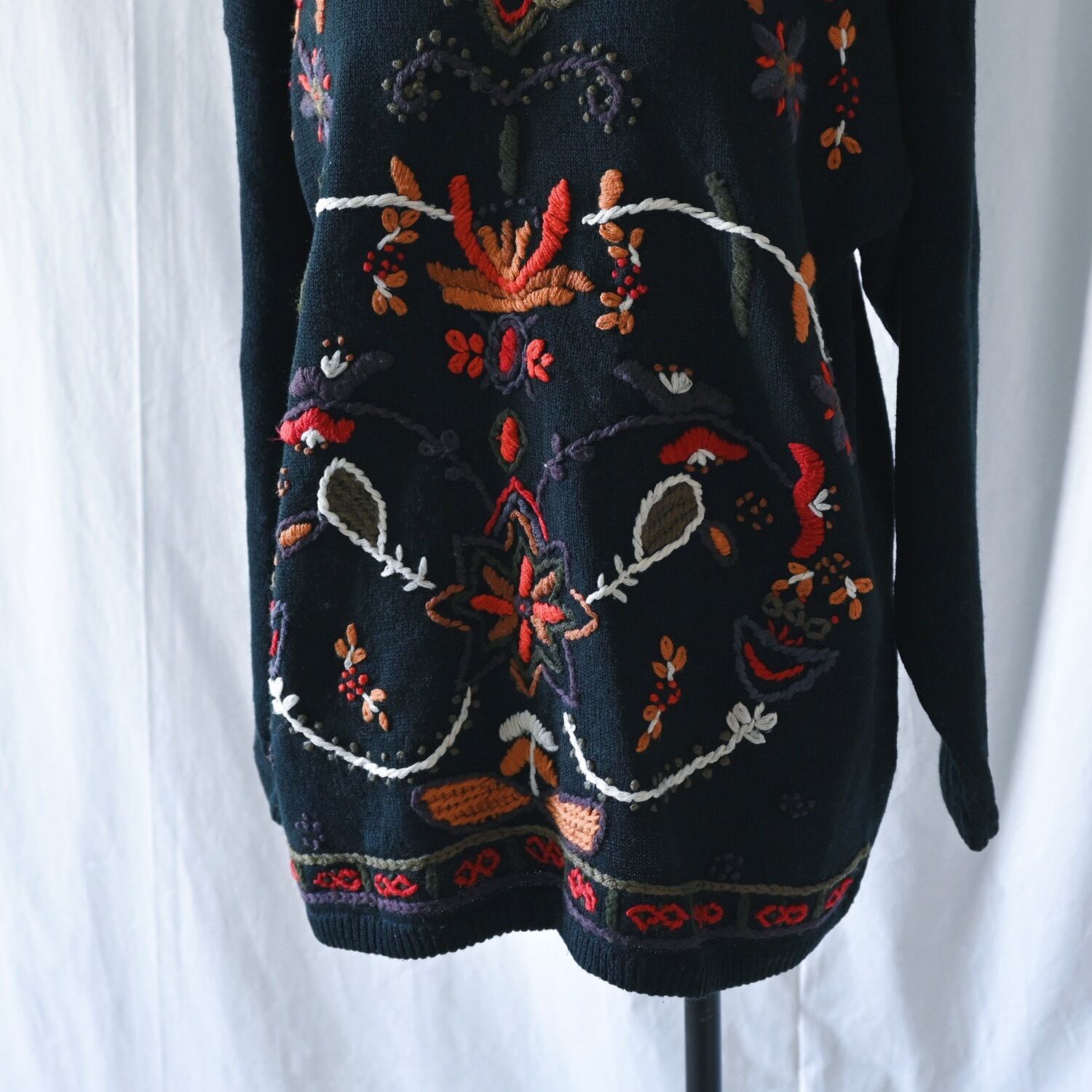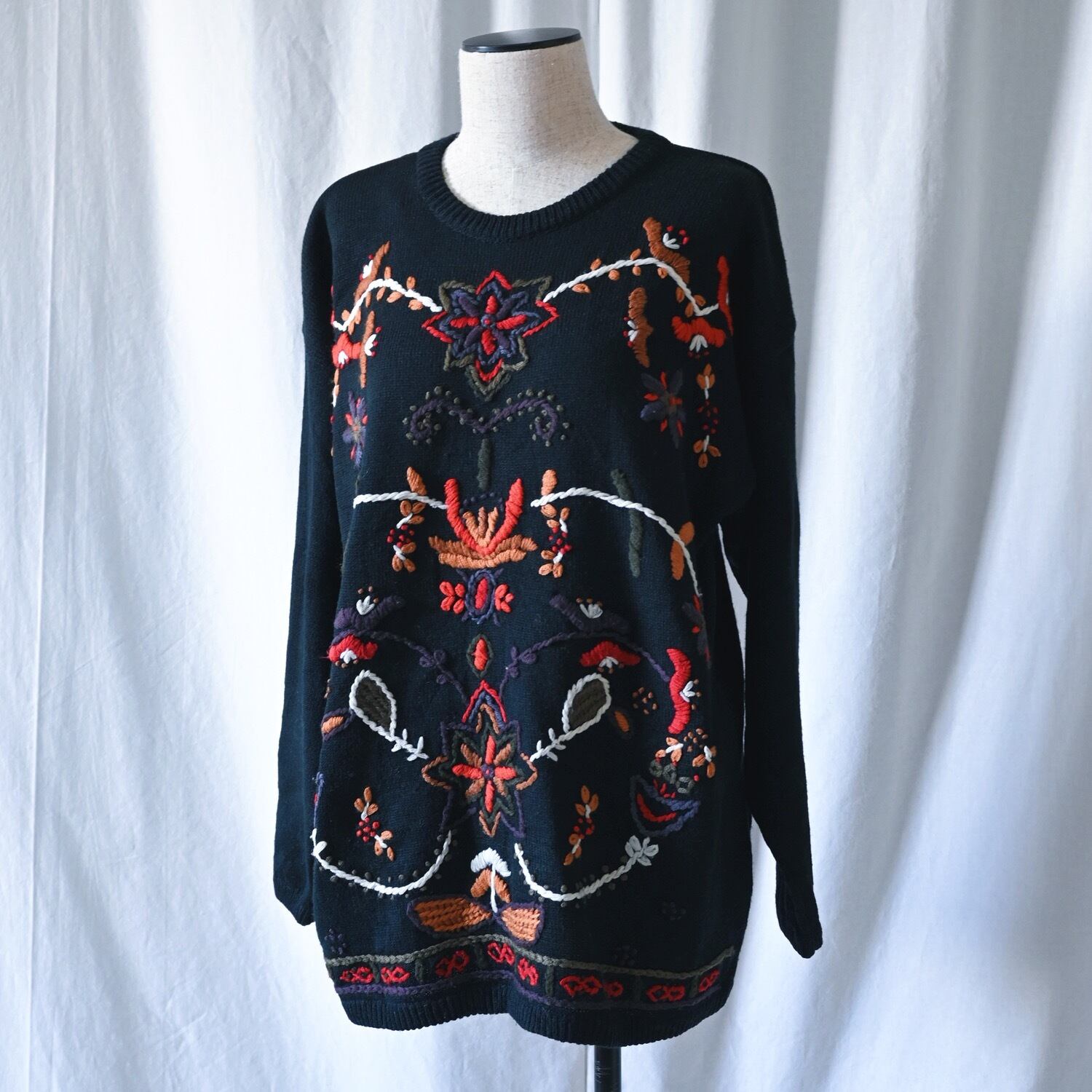 刺繍が見事なミドルゲージニット。