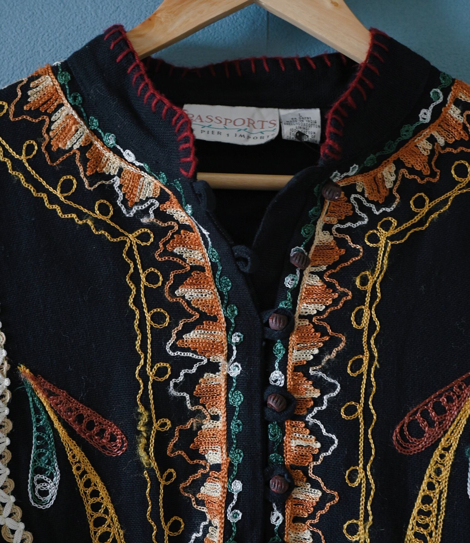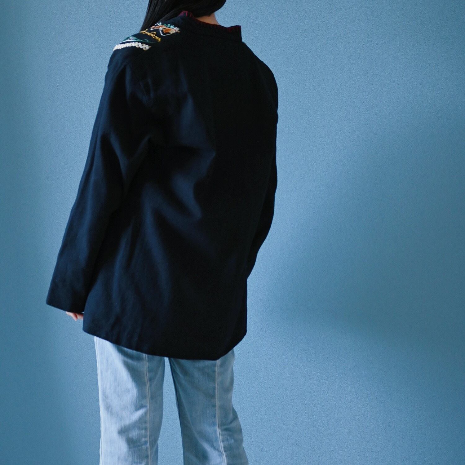 フロント全体にプリミティブな刺繍がデザインされたコットンジャケット。