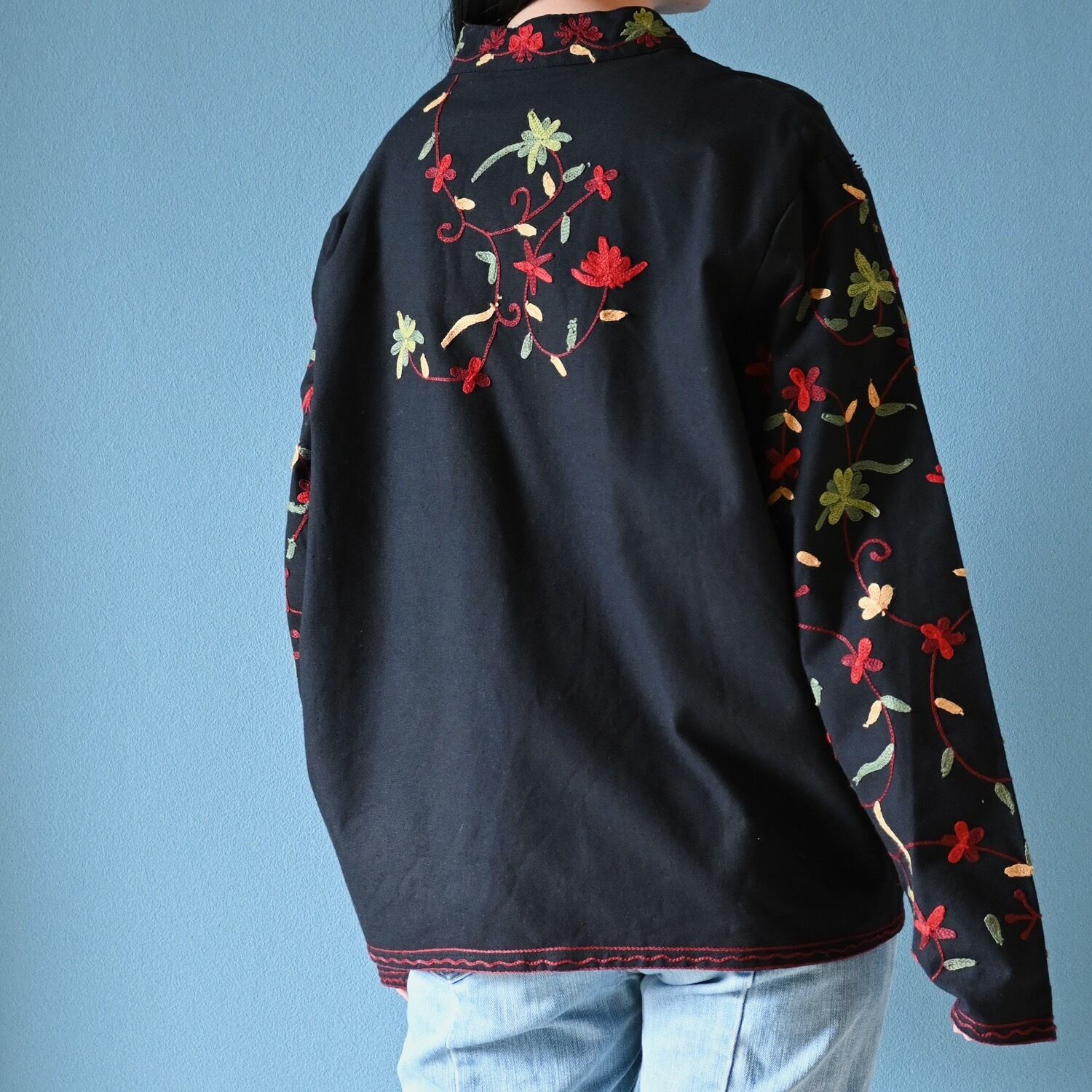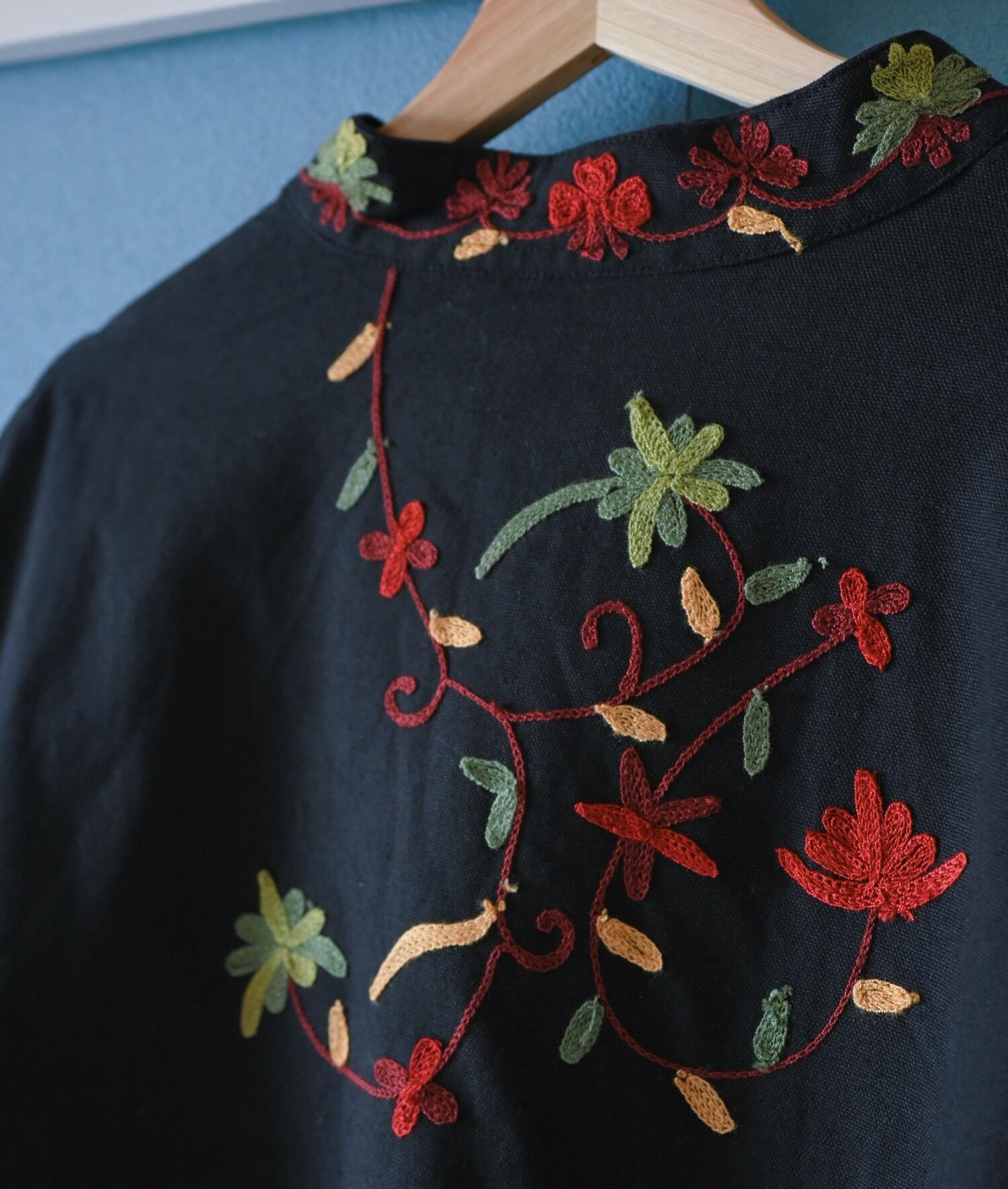 バックスタイルの刺繍まで美しい、コットンジャケット。コットンなのでロングシーズン着ていただけます。