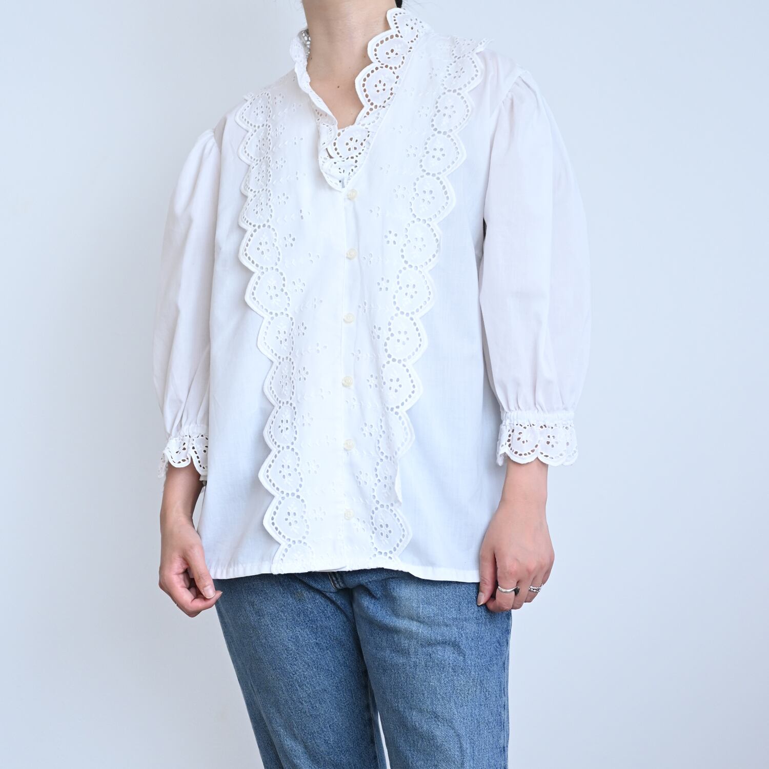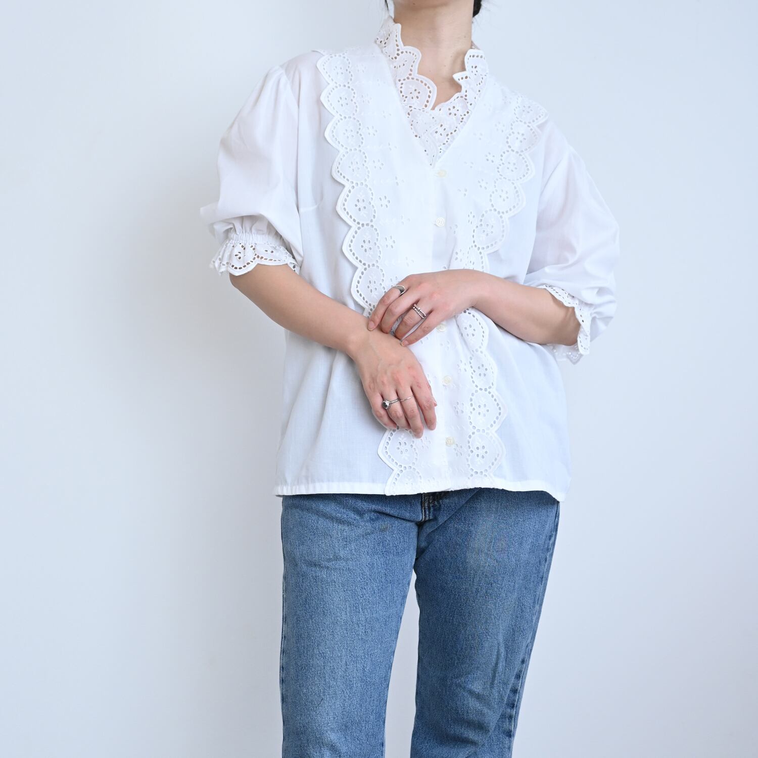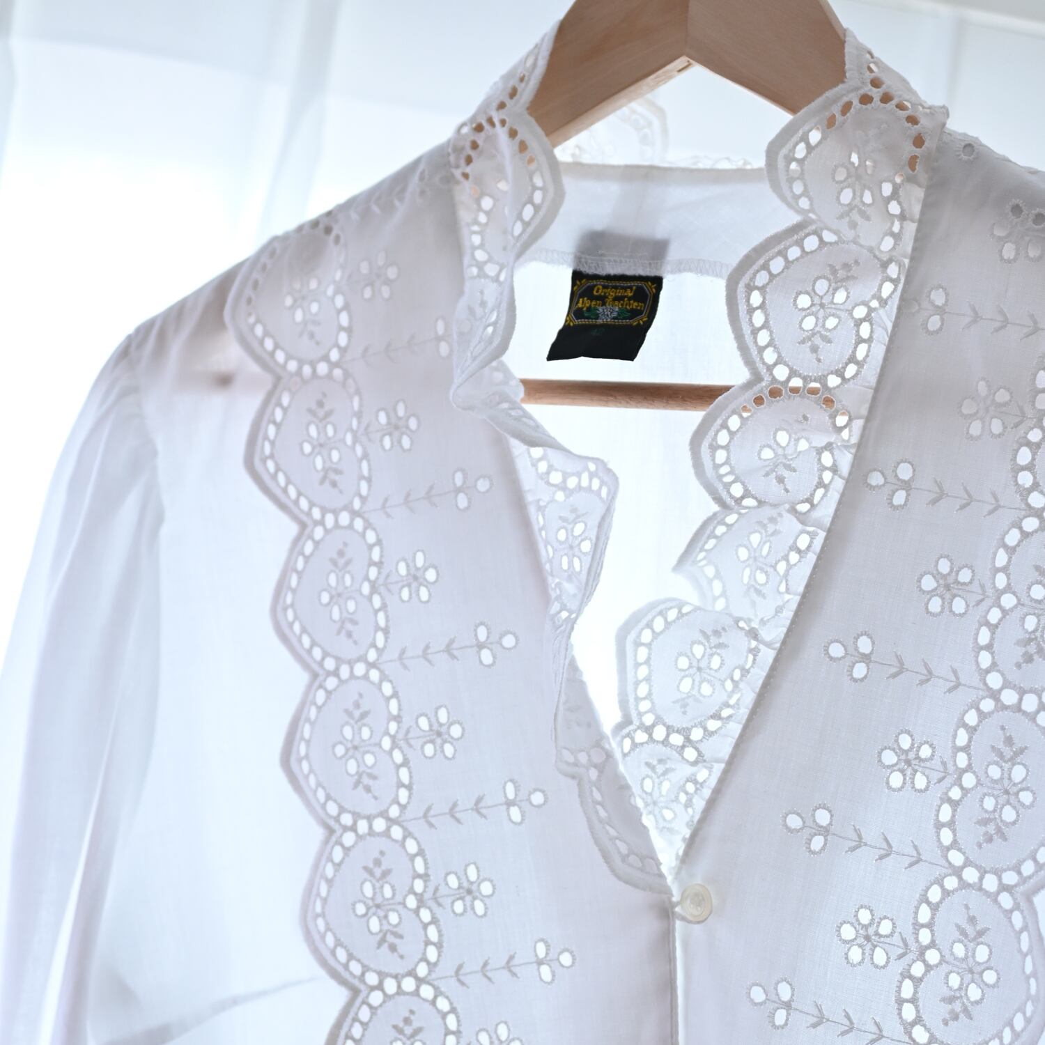 袖口にゴムが入っており、くしゅっと袖を上げることが出来ます。よく見るとレースがハートとお花の形をしており、さりげなくガーリーなデザインです。