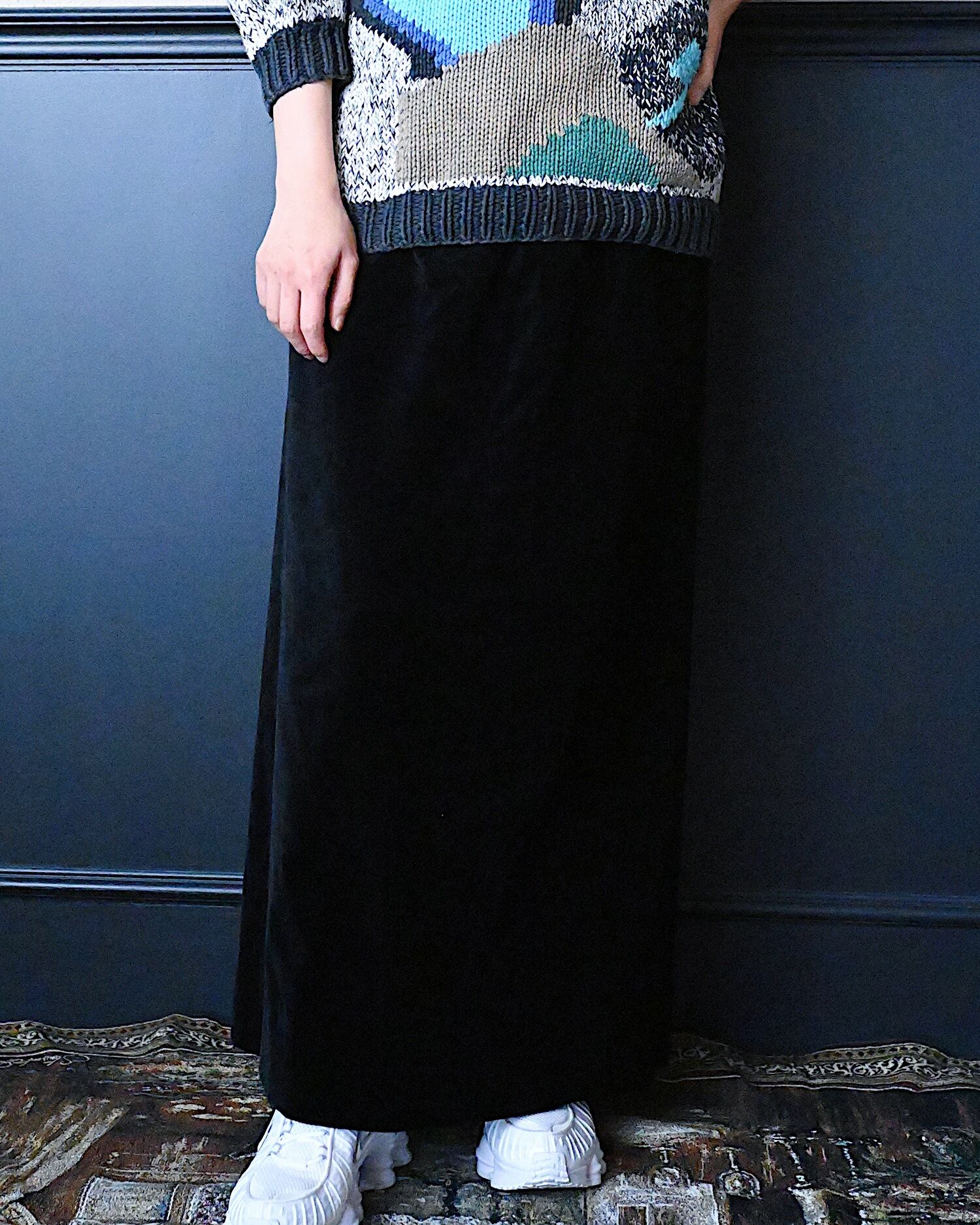 秋冬にぴったりなベロア素材です。ニットやスウェットなどのカジュアルなアイテムと合わせても、綺麗めなトップスと合わせても◎