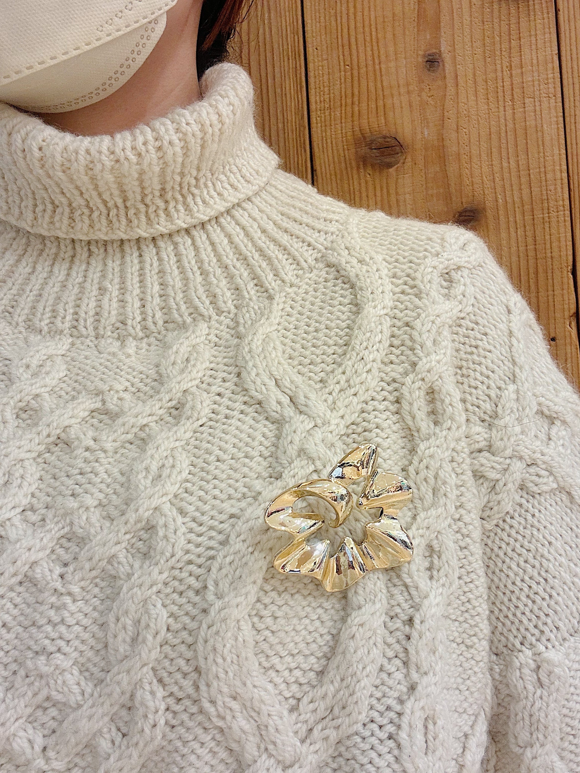 柔かなゴールドカラーです。アウターやニットにプラスしてアクセントに。