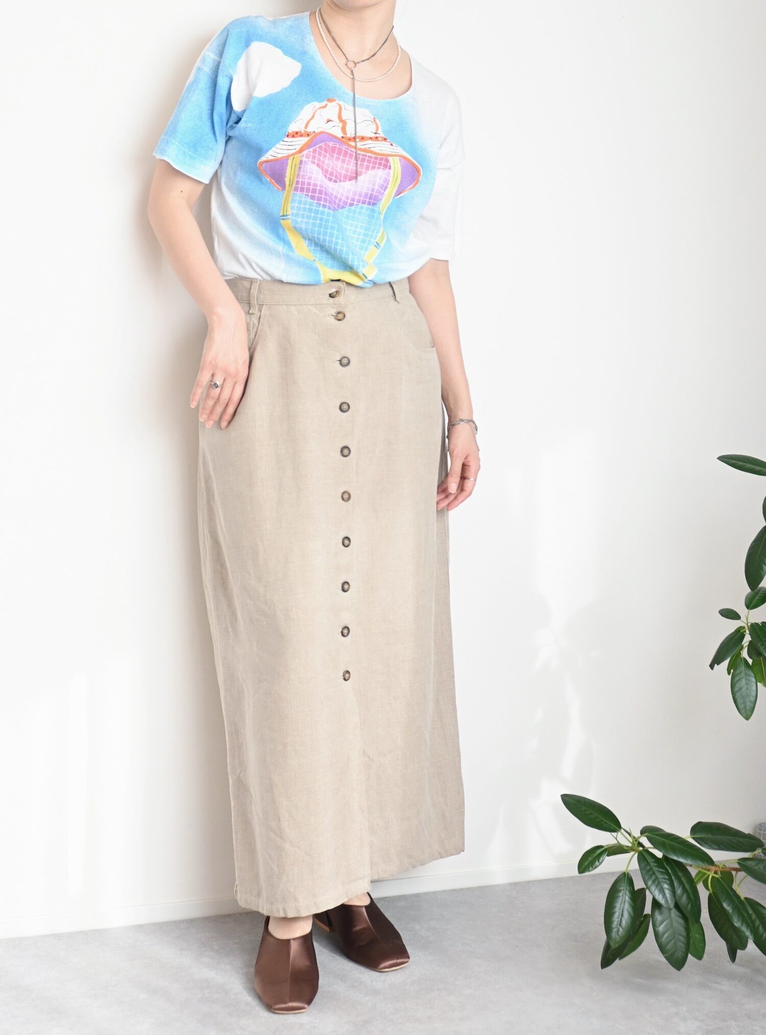夏にぴったりなリネンのロングスカート。厚みがありリネン特有の粗野な風合いが可愛いです。