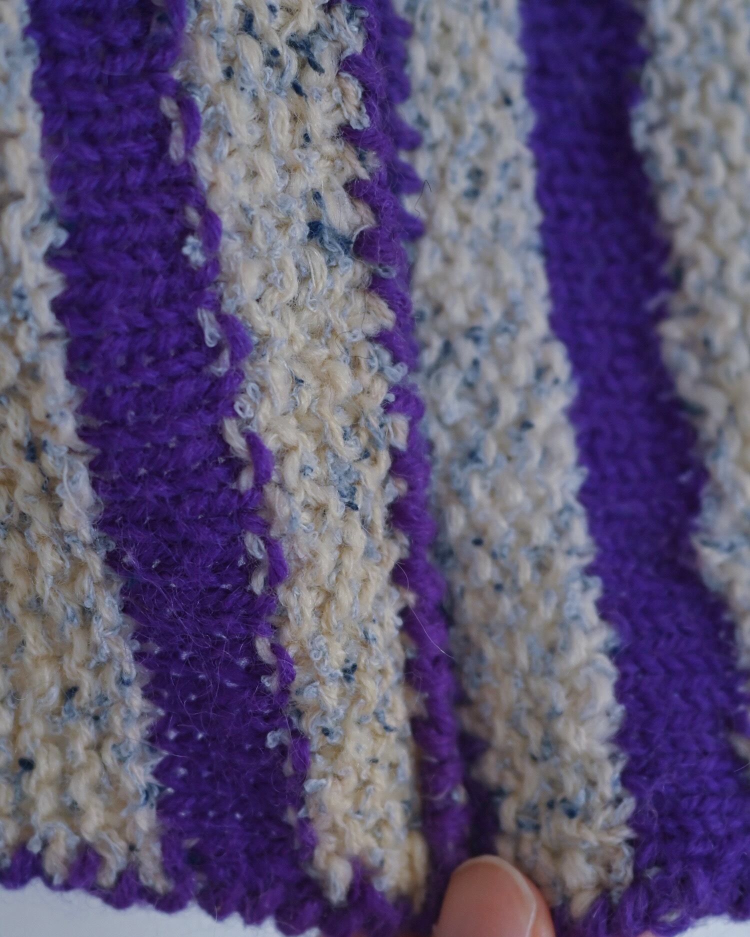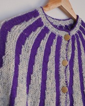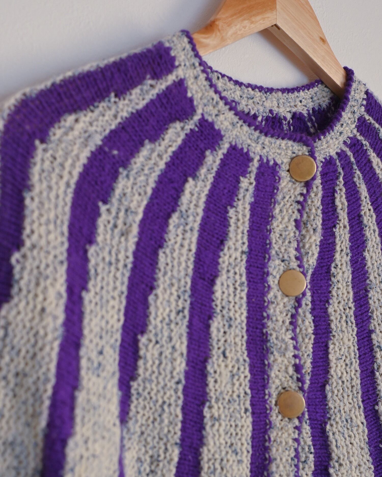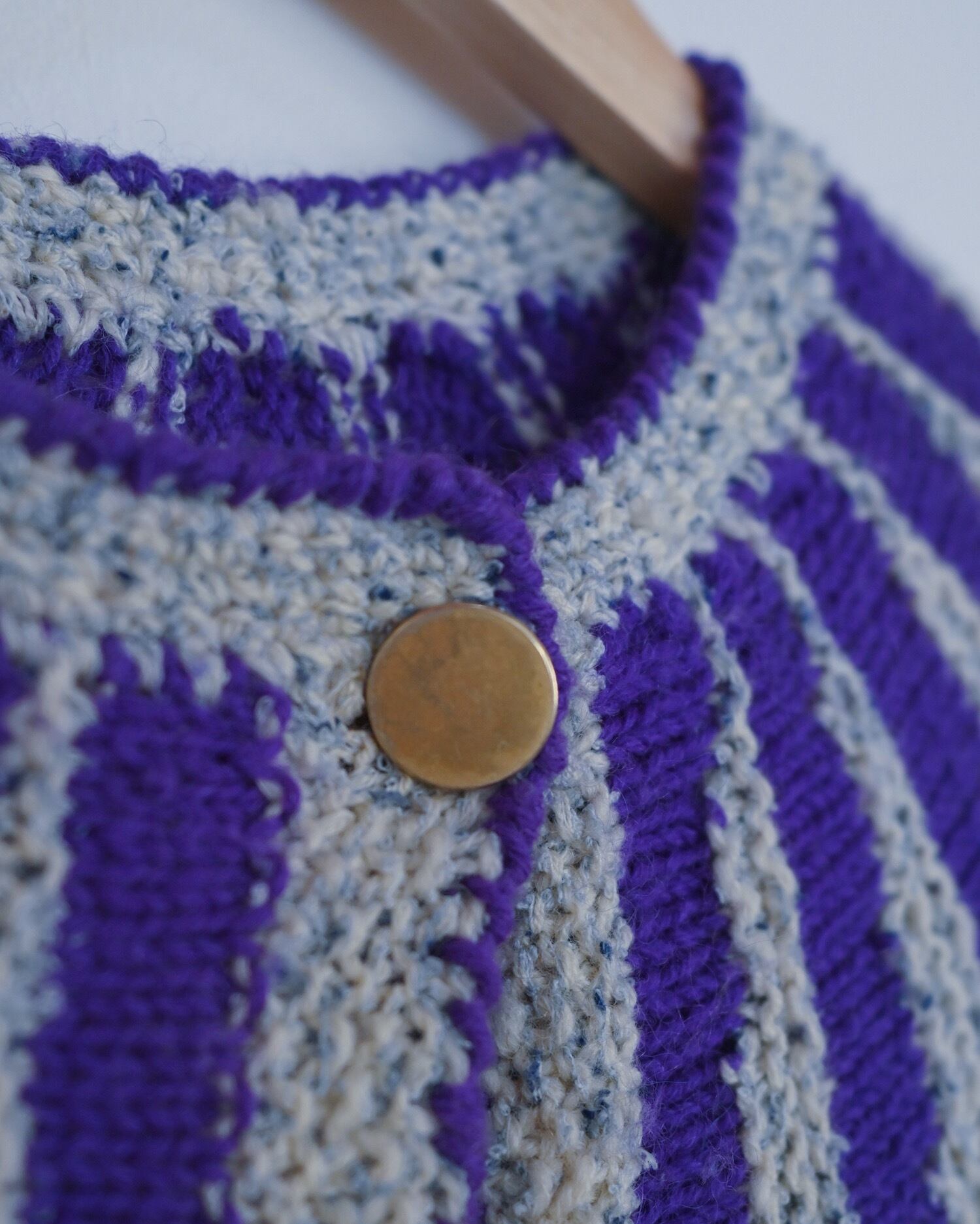 メランジグレーと、パープルの組み合わせが可愛い。ゴールドのボタンがポイントです。