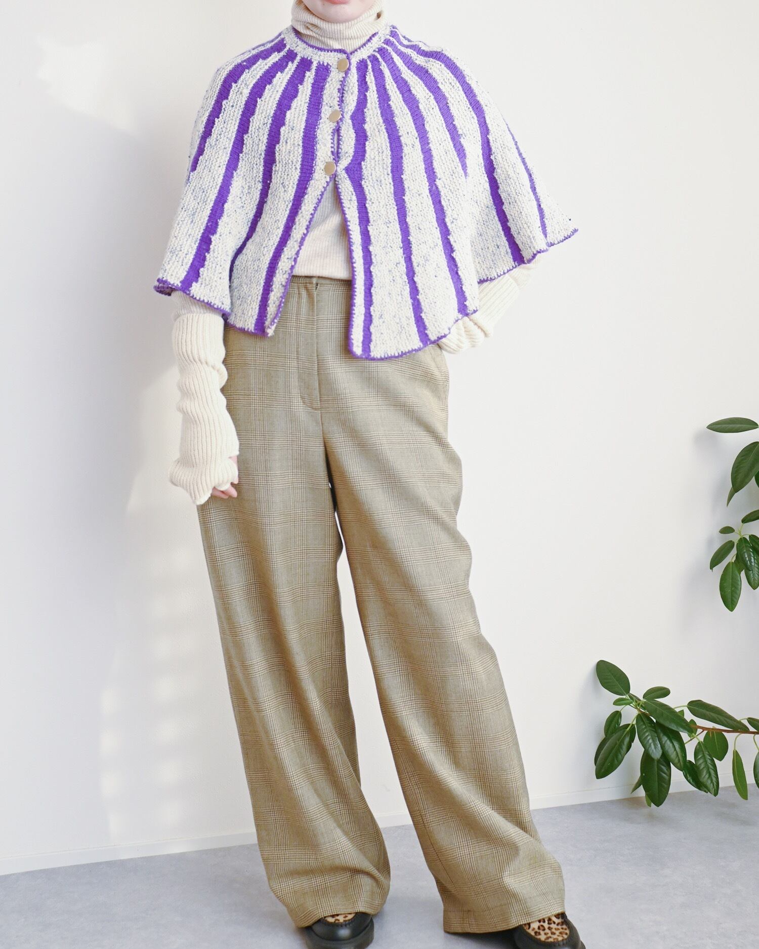 ハンドメイドで作られた温かみのあるミニポンチョ。付け襟のようなスタイリングがオススメです。