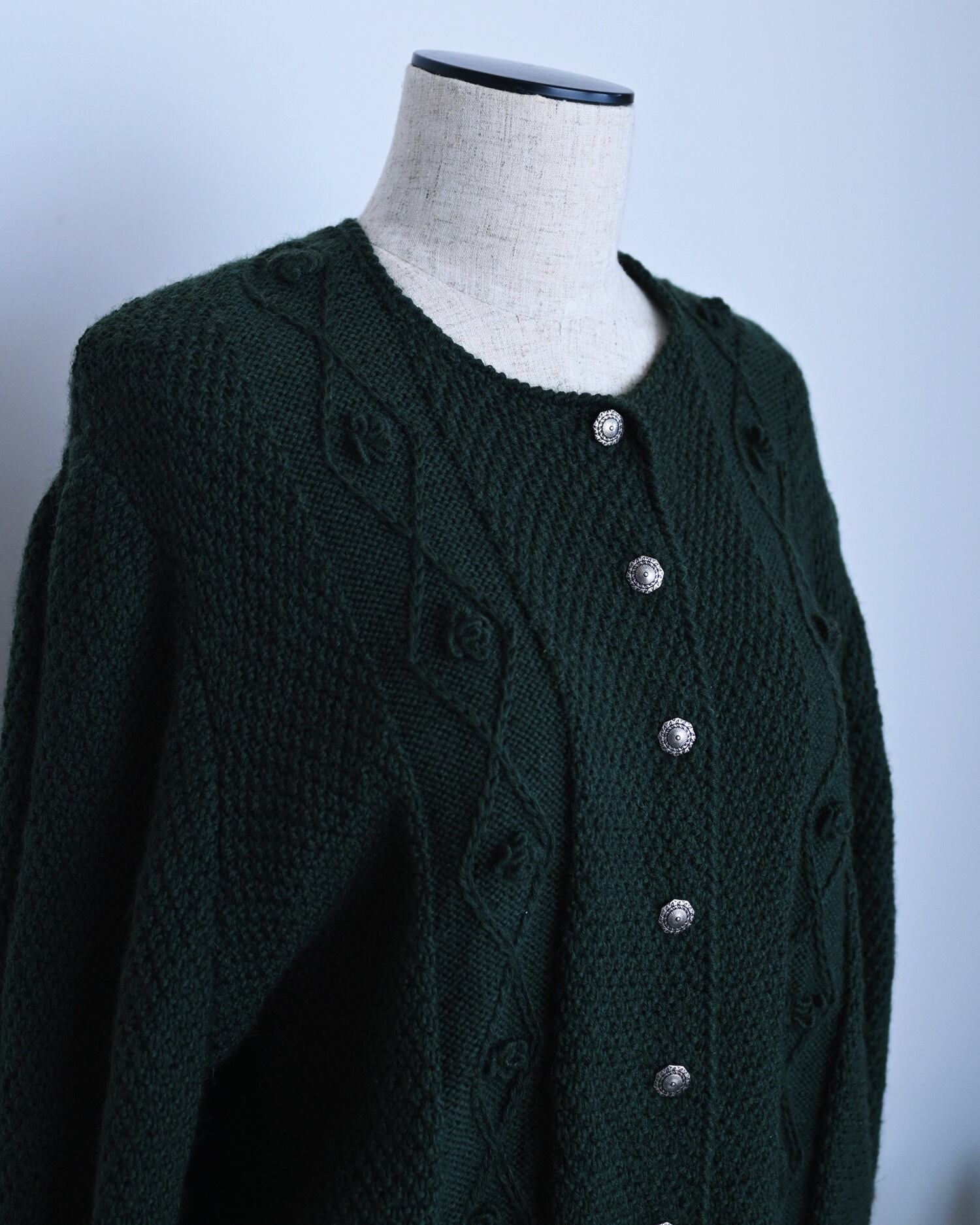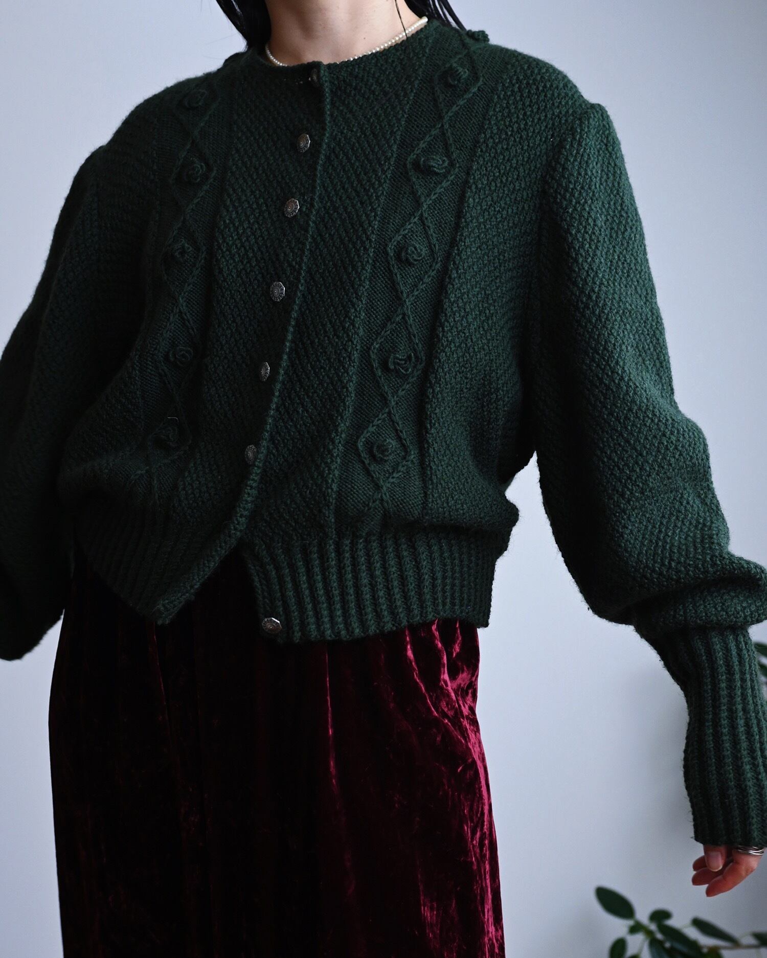 アーガイル柄の中に立体的なお花モチーフがデザインされています。シルバーのボタンがアクセントになっています。